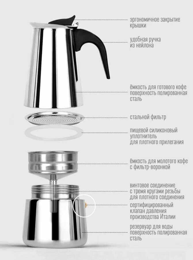 Купить Гейзерная кофеварка «EspressoMaker-12» 600мл, сталь, серый металлик с доставкой по всей России. Гейзерная кофеварка «EspressoMaker-12» 600мл, сталь, серый металлик: сравнение цен, характеристики, фото, актуальное наличие и цены.