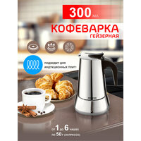 Гейзерная кофеварка Hotter HX-300 для индукционной, газовой, стеклокерамической плиты, 300 мл, нержавеющая сталь: сравнение цен, характеристики, фото, актуальное наличие и цены.