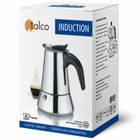 Кофеварка гейзерная ITALCO VIENNA INDUCTION на 6 порцийГейзерная кофеварка Italco «Induction» - попробуйте настоящий итальянский эспрессо не выходя из дома! Гейзерная кофеварка Italco «Induction»- это традиционный итальянский дизайн. Сферическая форма корпуса гейзерной кофеварки Italco «Induction» изготовлена из высококачественной нержавеющей стали. Отличается высокой надежностью и позволяет приготовить 6 порций (300 мл) крепкого и насыщенного кофе. Эргономичная пластиковая ручка из термостойкого пластика разработана для лёгкого и удобного пользования. Гейзерная кофеварка Italco «Induction» работает по принципу гейзера: пар от воды, закипающей в нижней части кофеварки, под давлением попадает в верхнюю часть, попутно насыщаясь вкусом и ароматом молотого кофе. Благодаря многократному прохождению пара от воды через слой молотого кофе, Вы сможете насладиться великолепным и ароматным кофе. Удобство кофеварки в том, что вся кофейная гуща остается во внутренней емкости. Подходит для индукционных плит.