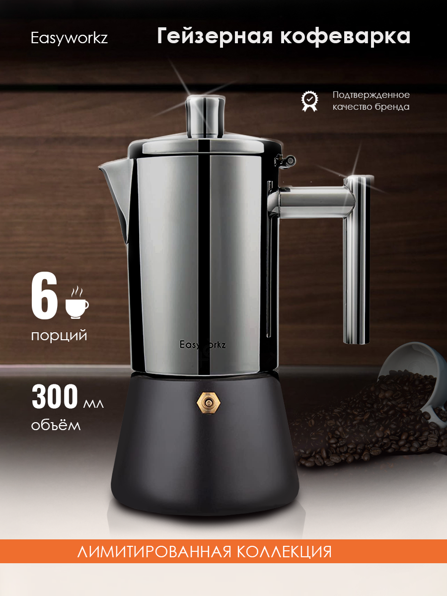 Гейзерная кофеварка из нержавеющей стали на 6 чашек Easyworkz, черная: сравнение цен, характеристики, фото, актуальное наличие и цены.