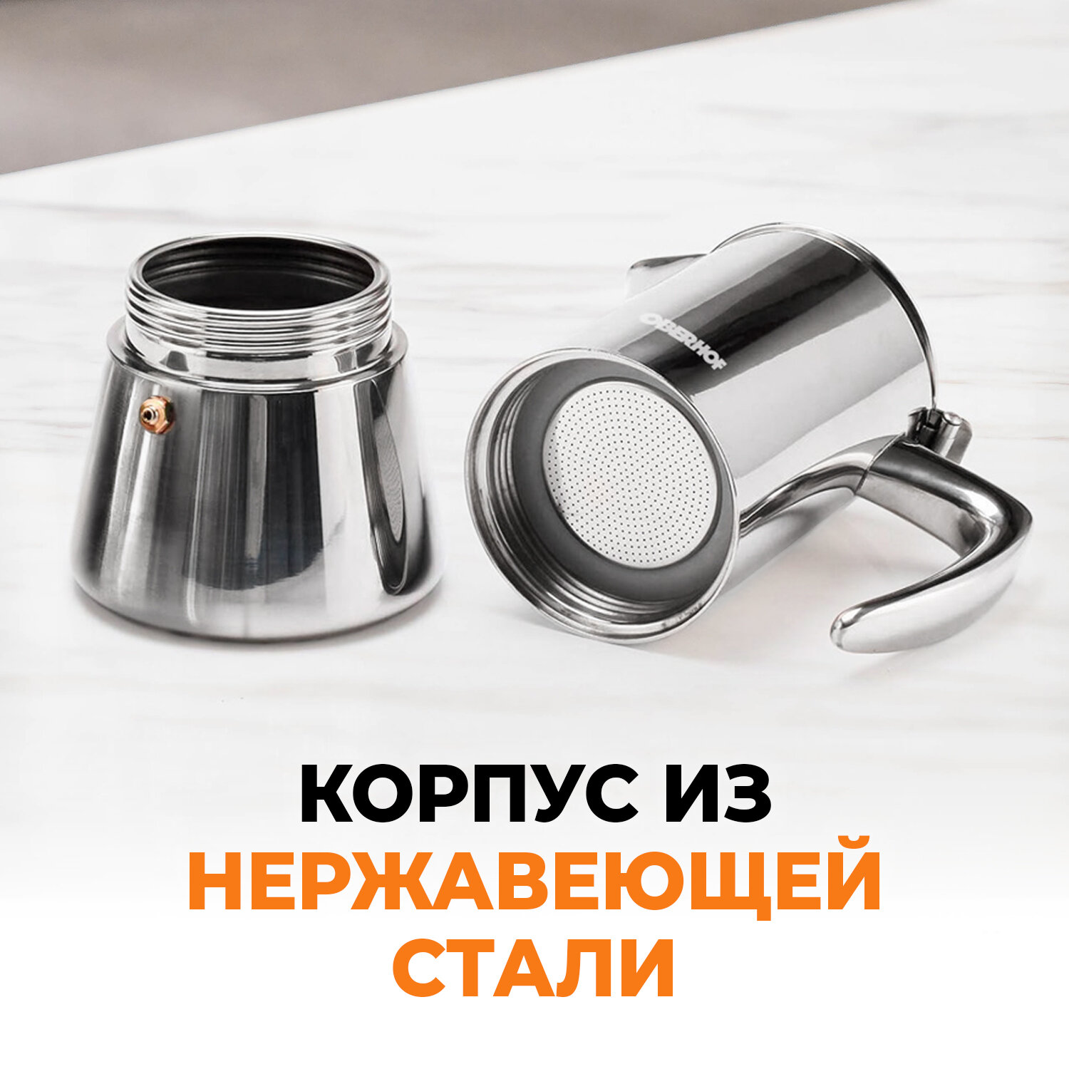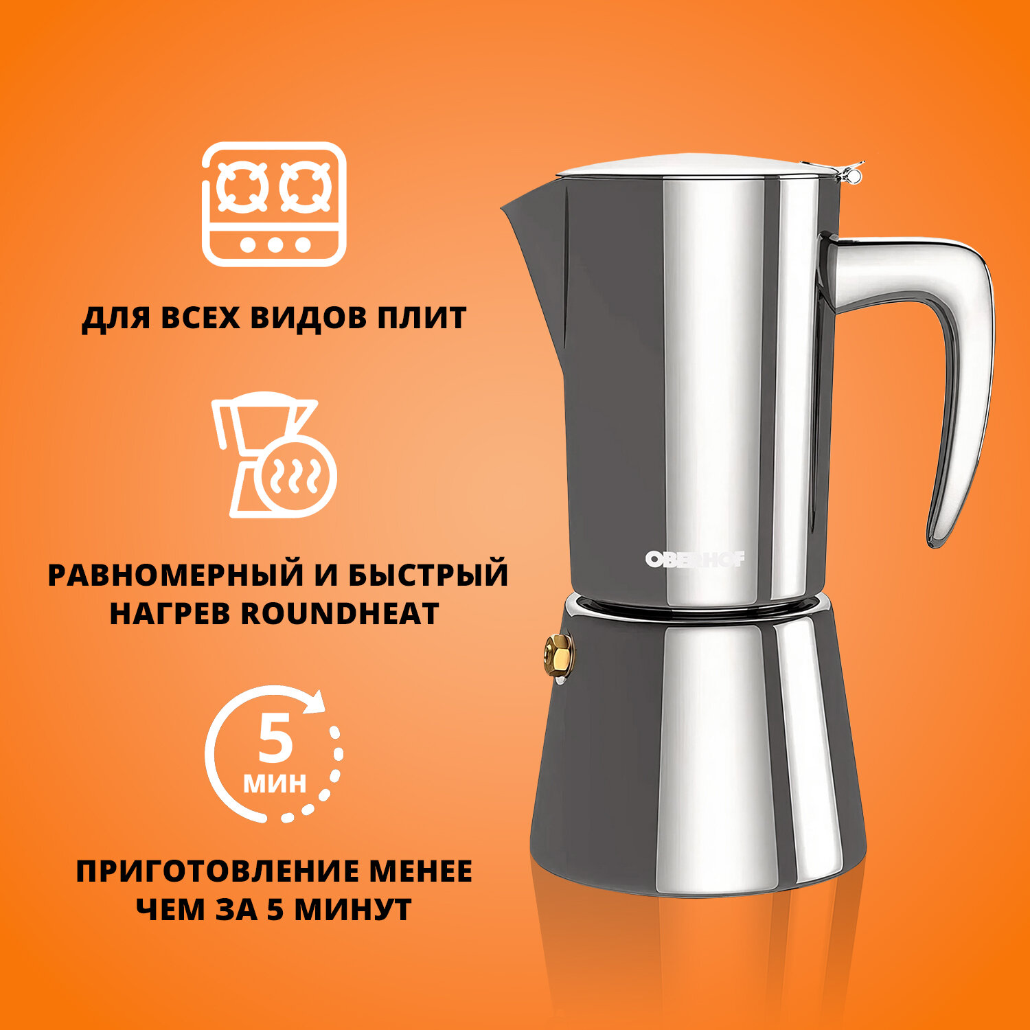 Гейзерная кофеварка Oberhof Feuerberg KF-20, нержавеющая сталь, 6 порций, объём 300мл: сравнение цен, характеристики, фото, актуальное наличие и цены.
