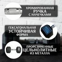 Гексагональные резиновые гантели Red Skill подходят для занятий бодибилдингом, занятий функциональным тренингом, занятий фитнесом и лечебной физкультурой. Форма гантелей универсальна и позволяет выполнять самые различные физические упражнения. Например, она подходит для выполнения реабилитационной программы после травм, укрепления мышечного каркаса, а также используется в качестве опоры в таких упражнениях, как: планка, отжимания от пола и стойка на руках. Гантель имеет неразборную конструкцию с грузом шестигранной формы. Благодаря этому снаряд устойчив на полу и надежно фиксируется на любой поверхности. Благодаря стальному грифу с рельефными насечками обеспечивается надежный хват и безопасные условия для занятий. Вы можете не беспокоиться за механическое воздействие снаряда на половое покрытие, т. к. обрезиненный груз не оставляет следов эксплуатации. Диаметр ручки изменяется в зависимости от веса! От более тонкой к более толстой: 2,5кг – 2,8 см, 45кг – 4 см. Покрытие грифа: хромированный, покрытие диска: обрезиненный. Форма дисков шестиугольная.