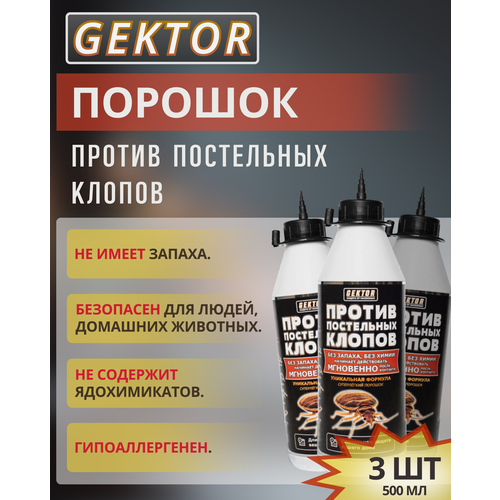 Инсектицидный порошок «GEKTOR против постельных клопов» обеспечит эффективную защиту Вашего дома от постельных клопов (обычных и резистивных), их личинок и яиц, а также других ползающих насекомых. Контактируя с насекомым, супер легкий порошок GEKTOR стремительно высасывает из него всю влагу, что приводит к гибели насекомого. Уникальный принцип действия не позволяет насекомым вырабатывать иммунитет к средству.