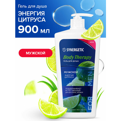 Артикул: 2186-615. Объем: 900 мл, Вес: 977 гр, Размер упаковки: 7 x 25 x 11 см, Температурное ограничение: Нет, Аромат: Цитрус, Форма выпуска: Флакон с дозатором, Для кого: Для мужчины, Возраст: Для взрослых, Набор: Нет. Мужской гель для душа SYNERGETIC "Энергия цитруса" BODY THERAPY - это деликатное и эффективное средство для очищения кожи. Гель для душа на основе растительных компонентов эффективно очищает и заботится о здоровье кожи. Мягкий увлажнитель изомерат сахарида и бисаболол оказывают регенерирующее действие, питают и успокаивают, нормализуют гидролипидный баланс и помогают поддержать естественный pH-баланс кожи. Экстракт лемонграсса и сок лайма активно питают, тонизируют и насыщают кожу полезными микроэлементами. Яркий цитрусовый аромат помогает восстановить жизненные силы и поднять настроение, оставляет приятное ощущение бодрости и свежести. Мультифункциональный компонент натурального происхождения софоролипид мягко очищает и сохраняет естественный микробиом кожи. Физиологичный уровень pH 5,5 способствует устранению сухости и гарантирует безопасность при частом использовании средства даже для чувствительной кожи. Эффективность при регулярном использовании подтверждена аккредитованным испытательным центром. Способ применения: нанести гель на влажную кожу, вспенить и тщательно смыть водой. Возможно появление естественного осадка натурального происхождения и незначительное изменение цвета геля, не влияющие на его качество и свойства. Состав: Aqua, Sodium Coco-Sulfate, Cocamidopropyl Betaine, Lauryl Glucoside, Sodium Chloride, Sodium Lauroyl Sarcosinate, Candida Bombicola/Glucose/Methyl Rapeseedate Ferment, Bisabolol, Cymbopogon Citratus Extract, Citrus Aurantifolia Juice, Saccharide Isomerate, Glycerin, Parfum, Tetrasodium Glutamate Diacetate, Sodium Citrate, Potassium Sorbate, Sodium Benzoate, Benzyl Alcohol, Benzoic Acid, Dehydroacetic Acid, Citric Acid.