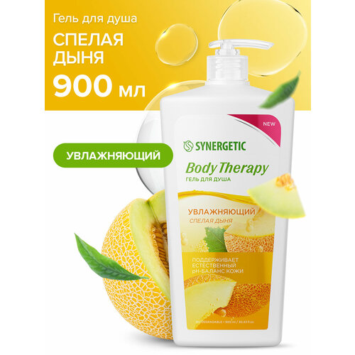 Артикул: 2186-617. Объем: 900 мл, Вес: 977 гр, Размер упаковки: 7 x 25 x 11 см, Температурное ограничение: Нет, Форма выпуска: Флакон с дозатором, Аромат: Дыня, Возраст: Для взрослых, Для кого: Унисекс, Набор: Нет. Гель для душа SYNERGETIC "Спелая дыня" BODY THERAPY - это деликатное и эффективное средство для очищения кожи. Формула с бисабололом эффективно очищает и оказывает комплексное воздействие на структуру кожи. Активные компоненты растительного происхождения с мягким увлажнителем изомератом сахарида активно питают, восстанавливают и насыщают кожу полезными микроэлементами. Экстракт дыни обладает мощным витаминизирующим действием. Он увлажняет и питает кожу, возвращая ей мягкость и эластичность, защищая от стресса и негативных воздействий окружающей среды. Аромат спелой дыни наполняет энергией дарит ощущение свежести. Мультифункциональный компонент натурального происхождения софоролипид мягко очищает и сохраняет естественный микробиом кожи. Физиологичный уровень pH 5,5 способствует устранению сухости и гарантирует безопасность при частом использовании средства даже для чувствительной кожи. Эффективность при регулярном использовании подтверждена аккредитованным испытательным центром. Способ применения: нанести гель на влажную кожу, вспенить и тщательно смыть водой. Возможно появление естественного осадка натурального происхождения и незначительное изменение цвета геля, не влияющие на его качество и свойства. Состав: Aqua, Sodium Coco-Sulfate, Cocamidopropyl Betaine, Lauryl Glucoside, Sodium Chloride, Sodium Lauroyl Sarcosinate, Candida Bombicola/Glucose/Methyl Rapeseedate Ferment, Bisabolol, Cucumis Melo Fruit Extract, Saccharide Isomerate, Glycerin, Parfum, Tetrasodium Glutamate Diacetate, Sodium Citrate, Potassium Sorbate, Sodium Benzoate, Benzyl Alcohol, Benzoic Acid, Dehydroacetic Acid, Citric Acid.