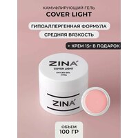 Купить Гель для наращивания и моделирования ZINA Cover Light — 100 грамм, нюд, глянцевый, для френча, прочный для лампы, для лампы UV LED с доставкой по всей России.