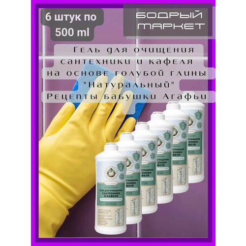 Гель для очищения сантехники и кафеля на основе голубой глины "Натуральный" Рецепты бабушки Агафьи.