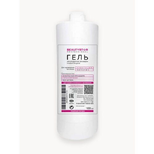 Контактный токопроводящий гель для аппаратных процедур HIFU SMAS от BeautyStar объём 1 литр с увлажняющим комплексом для микротоков, для миостимуляции, лифтинга и электромиостимуляции лица и тела. Профессиональный гель подходит для ультразвукового массажа, УЗТ фонофореза, кавитации, RF-лифтинга, РФ-терапии, для микротокового массажа и лифтинга кожи лица, век и вокруг глаз. Контактное средство, гель для лазерной эпиляции, фотоэпиляции, для лазерной терапии, а также для ультразвукового УЗ пилинга. Гель для аппаратной косметологии усиливает проведение веществ и электрофорез, и применяется для ионофореза, электрофореза, электропорации. Медиагель содержит биполярный ионный комплекс, усиливающий проведение тока и увлажняющий комплекс, защищающий и смягчающий кожу. Увлажняющий токопроводный гель подходит для всех типов кожи, для чувствительной кожи, для жирной, проблемной, комбинированной, сухой, зрелой, возрастной, подростковой и нормальной кожи. Токопроводящее средство и гель подходит для косметических массажных работает как биполярный гель. Создан из натуральных компонентов, что гарантирует его безопасность для здоровья. Подходит для любых типов кожи и может быть использован для подтяжки различных зон лица и тела. Гель для лифтинга легко распределяется по коже, не вызывая неприятных ощущений и дискомфорта у пациентов. Электродный гель имеет экономичный расход, что позволяет сократить затраты на проведение процедуры и сделать ее доступной для большего количества клиентов. При высыхании гель можно смачивать водой и продолжать аппаратный массаж. После процедуры гель смыть водой. Идеален для работы со всеми косметическими аппаратами для лица и тела. Является профессиональной аппаратной косметикой. Состав: вода очишенная, карбомер, глицерин, пропиленгликоль, гидроксид калия, консерванты, эдта, отдушка, гидролизованные формы эластина и коллагена, гиалуроновая кислота. Противопоказания: индивидуальная непереносимость компонентов. Срок годности: 3 года. Производство: Россия.
