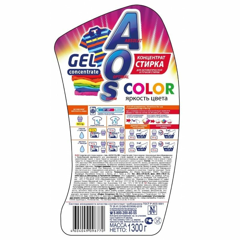 Гель для стирки AOS Color, концентрат, 1,3 кг (634-3): сравнение цен, характеристики, фото, актуальное наличие и цены.