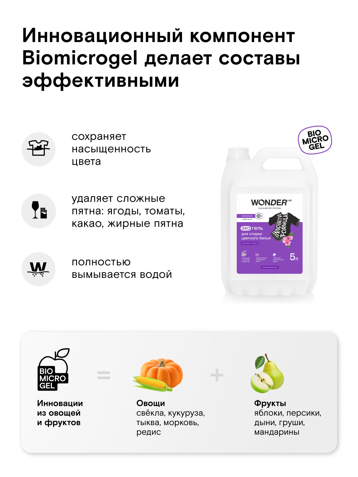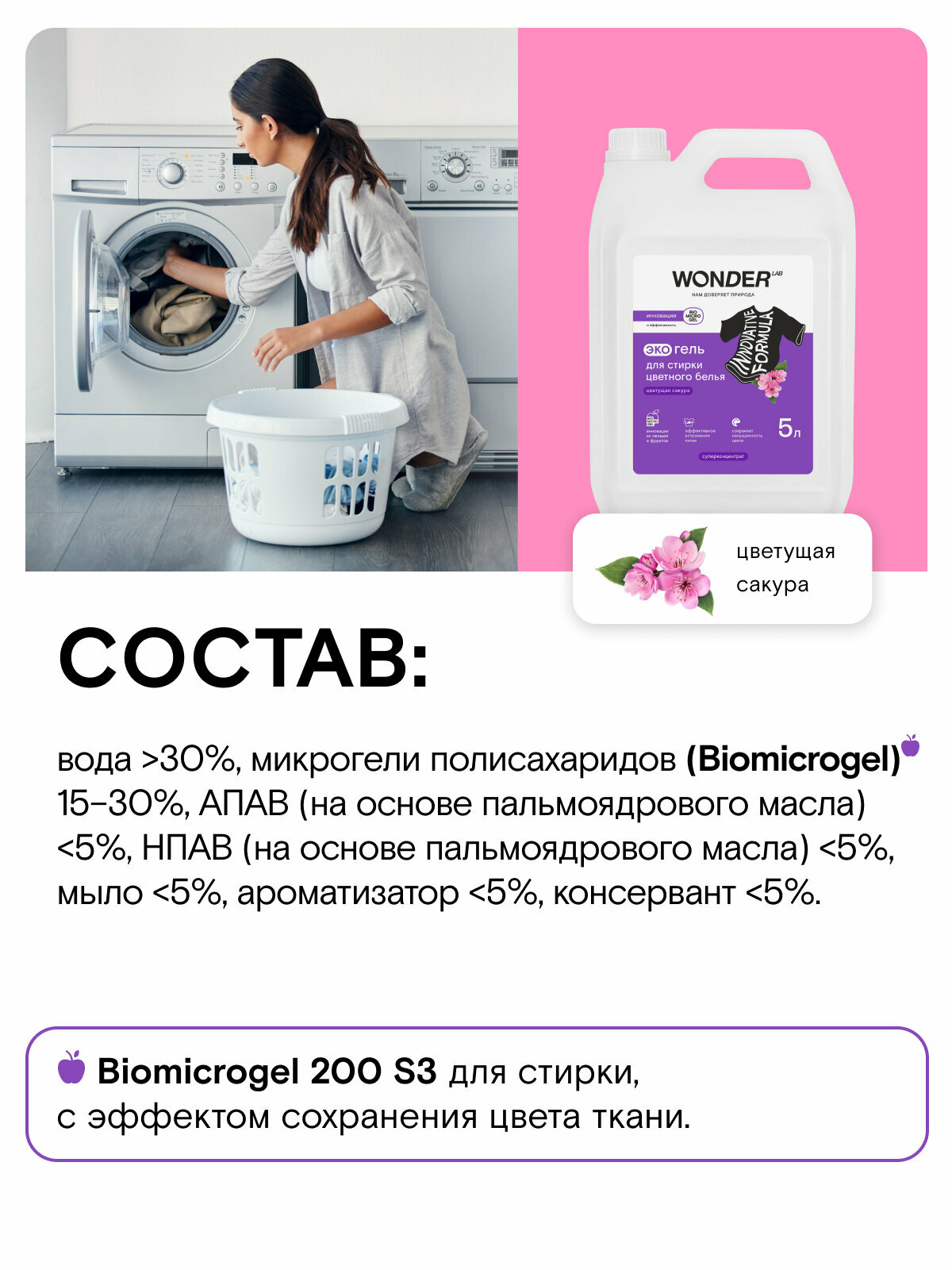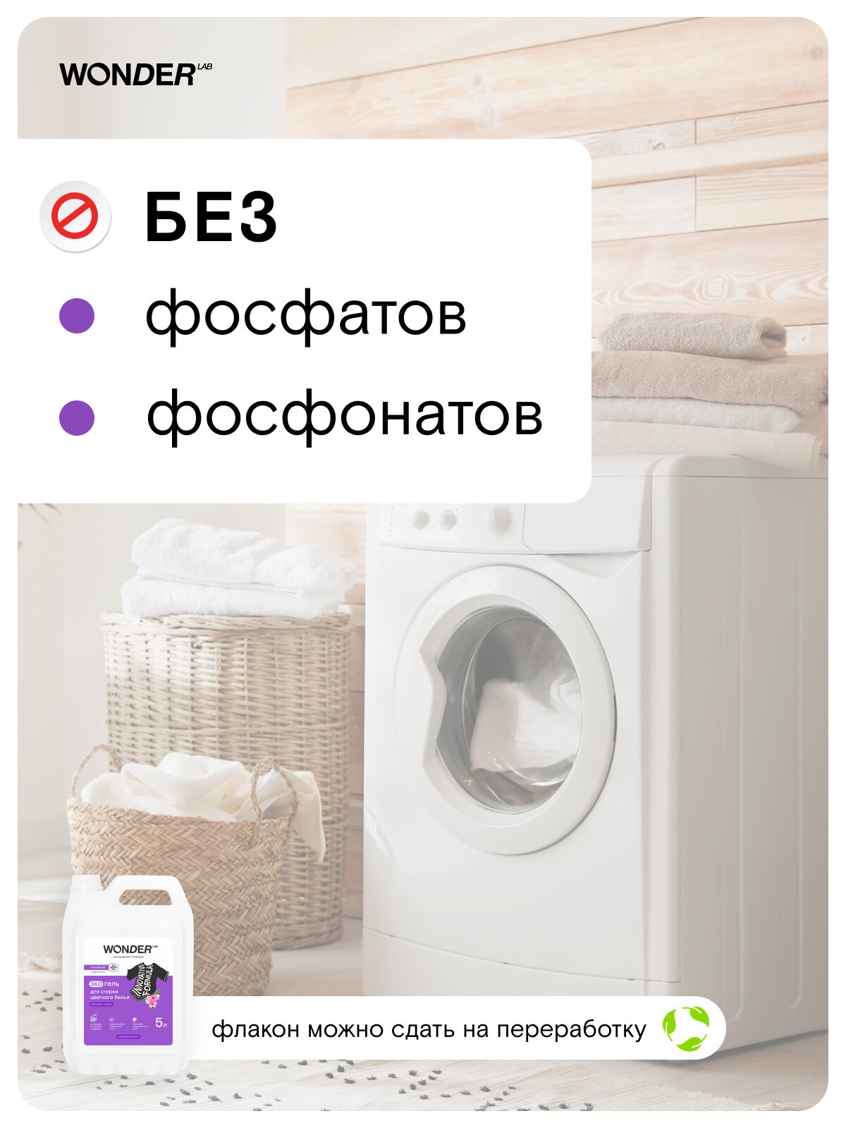 Гель для стирки для цветной одежды, суперконцентрат с цветочным ароматом, против стойких пятен, WONDER LAB, 200 стирок, 5 л: сравнение цен, характеристики, фото, актуальное наличие и цены.