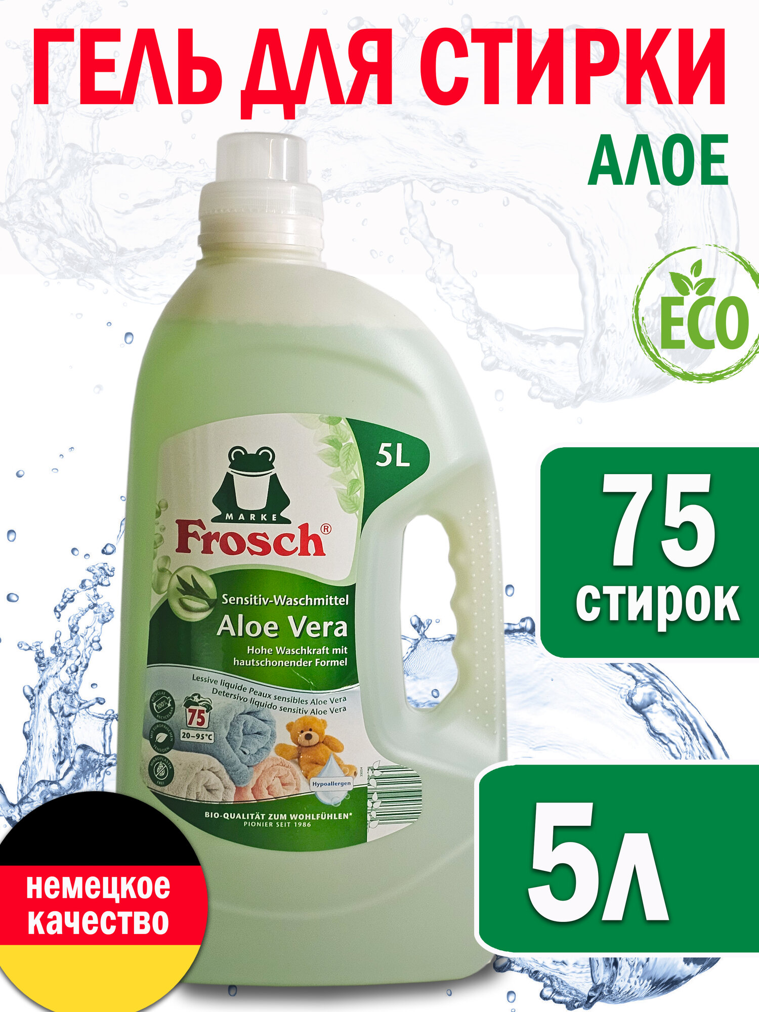 Купить Гель для стирки Frosch ЭКО концентрированный с Алое Вера, 1шт х 5л с доставкой по всей России. Гель для стирки Frosch ЭКО концентрированный с Алое Вера, 1шт х 5л: сравнение цен, характеристики, фото, актуальное наличие и цены.