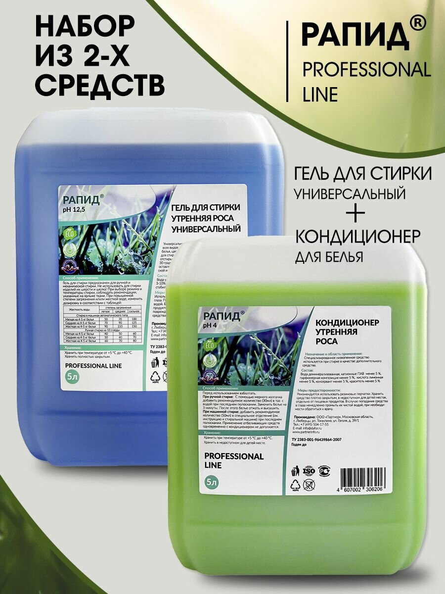 Купить Гель для стирки + кондиционер для белья / Рапид «Утренняя роса», набор 5л+5л с доставкой по всей России. Гель для стирки + кондиционер для белья / Рапид «Утренняя роса», набор 5л+5л: сравнение цен, характеристики, фото, актуальное наличие и цены.