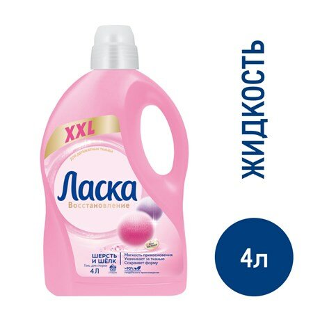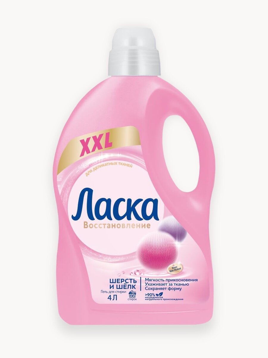 Жидкий порошок Ласка Восстановление Шерсть и Шёлк эффективно и бережно отстирывает загрязнения, сохраняя форму и мягкость ваших любимых вещей. Специальный полимер в составе формулы разглаживает волокна, за счёт чего поверхность ткани становится мягче. Особые компоненты сохраняют эластичность шерстяной ткани. Ласка содержит специальные цветозащитные ингредиенты, которые обеспечивают стойкость цвета одежды. Формула содержит более 90% ингредиентов натурального происхождения.
