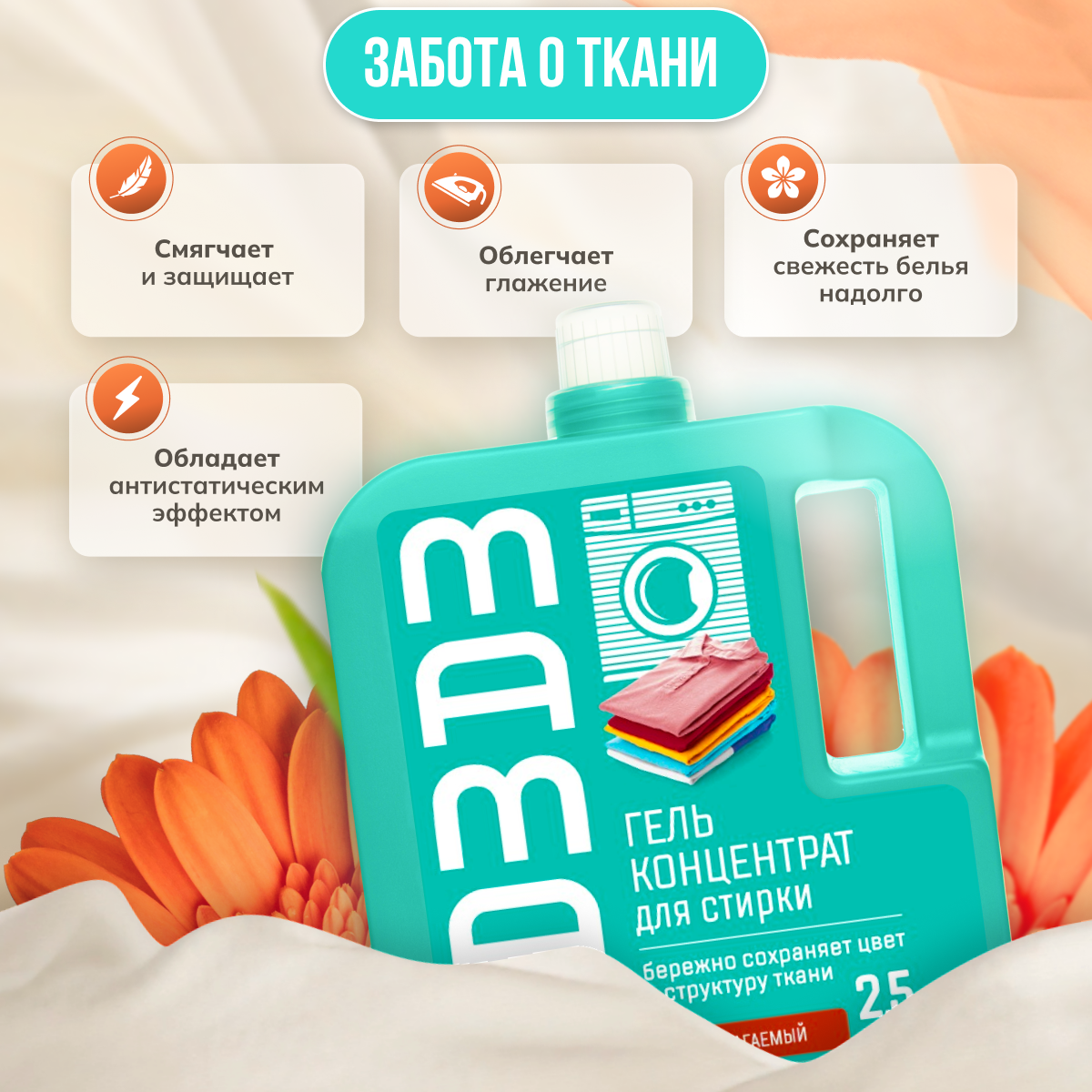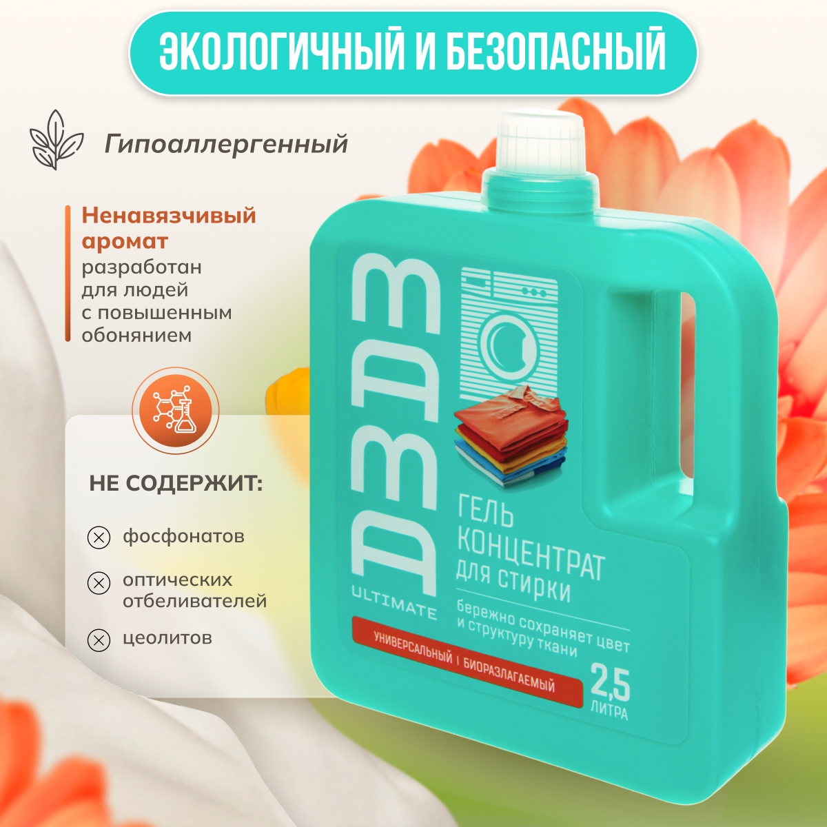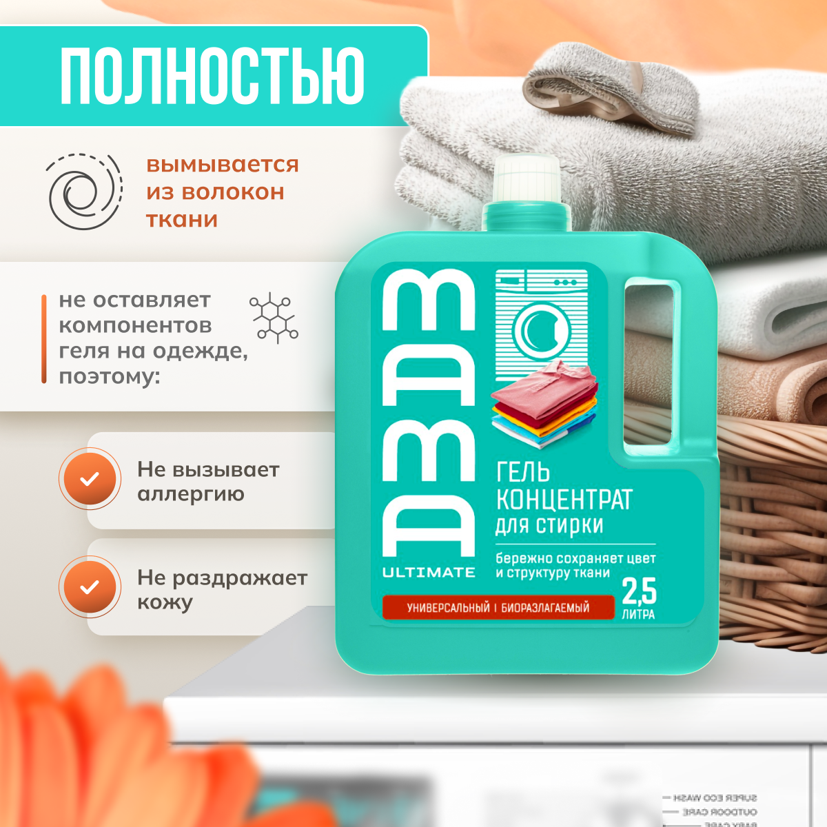 Универсальный концентрированный гель для стирки Mama Ultimate объемом 2,5 литра бережно сохраняет цвет и структуру ткани. Подходит как для ручной, так и для машинной стирки. Заботится о ткани: устраняет неприятный запах, сохраняет цвет, сохраняет прочность и структуру ткани. Биоразлагаемый состав геля не содержит фосфонатов, оптических отбеливателей и цеолитов, что делает его безопасным для окружающей среды. Гель полностью выполаскивается из ткани, не оставляя следов. Подходит для всех типов тканей, кроме шерсти и шелка. Mama Ultimate - это надежный помощник в уходе за вашей одеждой.