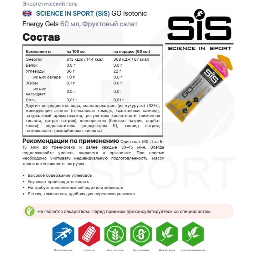 SCIENCE IN SPORT (SiS) GO Isotonic Energy Gels 3 x 60 мл, Фруктовый салат: сравнение цен, характеристики, фото, актуальное наличие и цены.