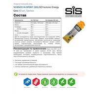 | Дополнительная информация | Один гель (60 г) за 5-15 мин до тренировки и далее каждые 30-45 мин. Всегда поддерживайте уровень жидкости в организме. При приеме необходимо учитывать индивидуальную подготовленность, массу тела и интенсивность нагрузок. Высокое содержание углеводов; Улучшает производительность; Не требует дополнительной воды или жидкости; Легкая, компактная, удобная для переноски упаковка |