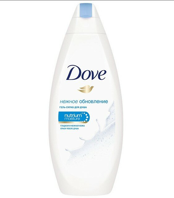 Появление бренда Dove связано с созданием уникального очищающего средства для кожи, не содержащего щелочи. Формула единственного в своем роде крем- мыла на четверть состоит из увлажняющего крема - именно это его качество помогает защищать кожу от раздражения и сухости, которые неизбежны при использовании обычного мыла. Dove — марка, которая известна благодаря авангардному изобретению: мягкому крем- мылу. Dove любим миллионами, ведь они не содержат щелочи, оказывают мягкое, щадящее воздействие на кожу лица и тела. Удивительное по своим свойствам крем- мыло довольно быстро стало одним из самых популярных косметических средств. Успех этого продукта был настолько велик, что производители долгое время не занимались расширением ассортимента. Прошло почти сорок лет с момента регистрации товарного знака Dove, прежде чем свет увидел крем- гель для душа и другие косметические средства этой марки. Все они создаются на основе формулы, разработанной еще в прошлом веке, но не потерявшей своей актуальности. На сегодняшний день этот бренд по праву считается олицетворением красоты, здоровья и женственности. Помимо женской линии косметики выпускаются детские косметические средства и косметика для мужчин. Несмотря на широкий ассортимент предлагаемых средств по уходу за кожей и волосами, завоевавших признание в более чем 80 странах по всему миру, производители находятся в постоянном поиске новых формул. Dove считается одним из ведущих в своей области. Он известен миллионам людей в почти сотне стран по всему миру. В мире Dove красота — это источник уверенности в себе, а не беспокойства. Миссия бренда — дать новому поколению возможность расти в атмосфере позитивного отношения к собственной внешности. Гель- скраб Dove Нежное обновление – это удобное и экономичное средство 2 в 1, которое не только тщательно и бережно очистит кожу во время мытья, но и создаст мягкий пилинг- эффект, отшелушивая ороговевшие клетки. Кремообразное средство снимает верхний омертвевший слой, оставляя вашу кожу обновленной, гладкой и шелковистой, даря ей здоровое сияние и улучшая ее цвет. Особый комплекс Nutrium Moisture, на основе которого создан этот гель- скраб, эффективно питает и насыщает кожу витаминами и минералами, запуская процессы регенерации изнутри. Сочетание наших самых бережных очищающих компонентов, нежных отшелущивающих частиц и комплекса ухаживающих уомпонентов nutrium moisture обеспечивает больше естественного питания для вашей кожи, чем большинство гелей для душа. Гладкая и нежная кожа сразу после душа. Шелковисто- гладкая кожа уже через 10 дней. Обогащен липидами, идентичными липидам кожи. Поддерживает естественную структуру здоровой кожи. Восстанавливает защитный барьер кожи, ограничивая влияние агрессивных факторов окружающей среды