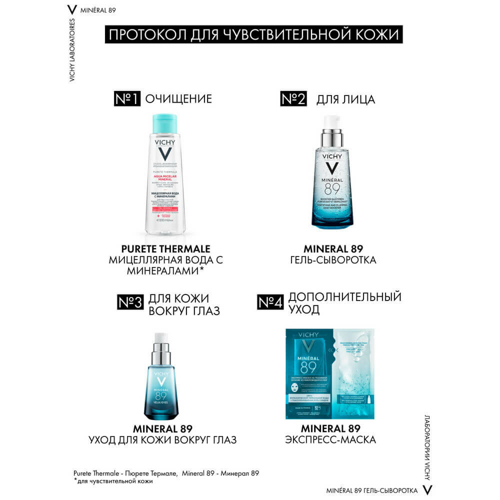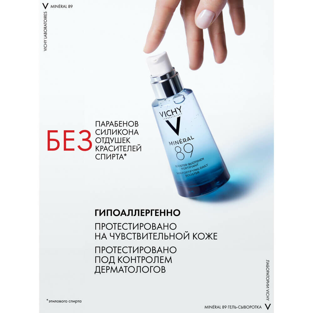 | Дополнительная информация | Минерализирующая термальная вода Vichy 89% + Гиалуроновая кислота в высокой концентрации. Гипоаллергенно. Без отдушек, красителей, силикона, парабенов и спирта. |