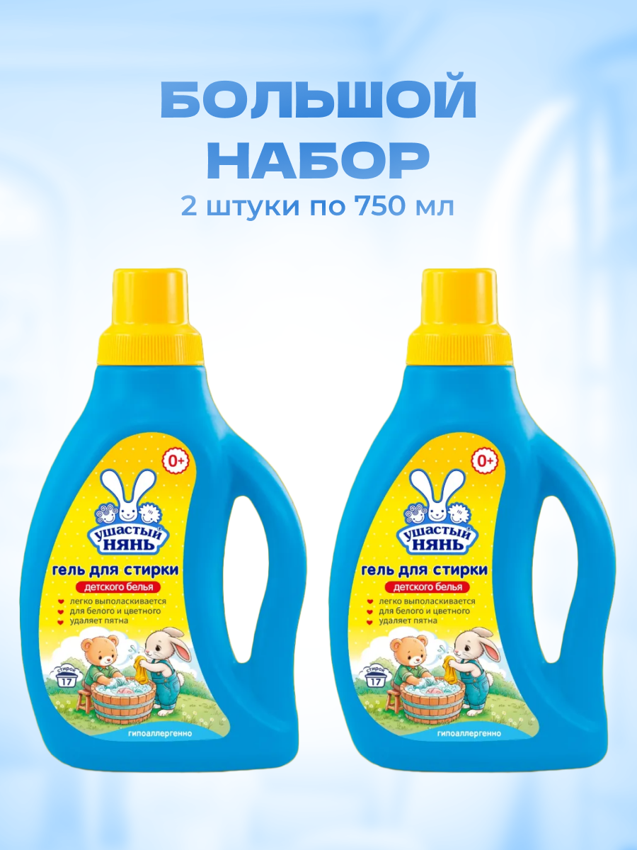 Купить Гель Ушастый нянь для стирки детского белья 2 шт по 750 мл с доставкой по всей России. Гель Ушастый нянь для стирки детского белья 2 шт по 750 мл: сравнение цен, характеристики, фото, актуальное наличие и цены.