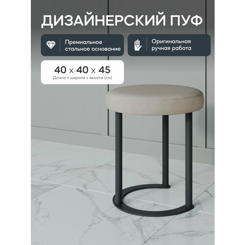 Дизайн: круглый пуфик выполнен в элегантном и современном дизайне с изящным металлическим каркасом и станет идеальным дополнением к любому интерьеру. Главная изюминка в исполнении – подставка для ножек в форме подковы, благодаря которой пуфик смотрится акцентно в интерьере Вашего дома.