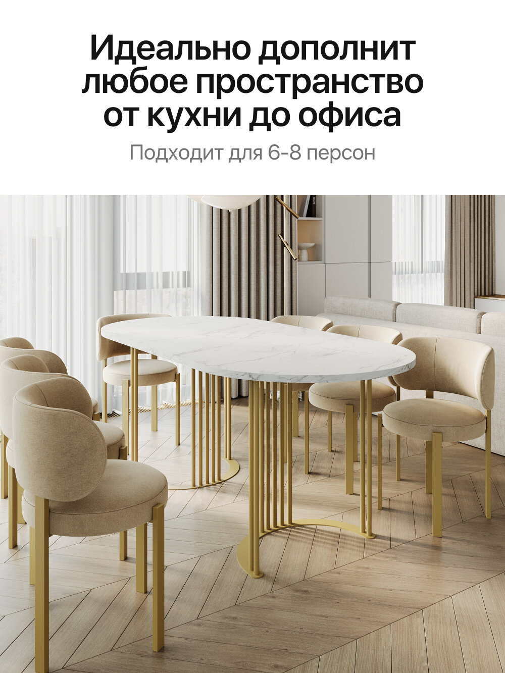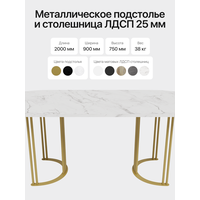 GEN GROUP Стол кухонный большой 200х90 см VIOLUR, светлый мрамор с золотым металлическим подстольем: сравнение цен, характеристики, фото, актуальное наличие и цены.