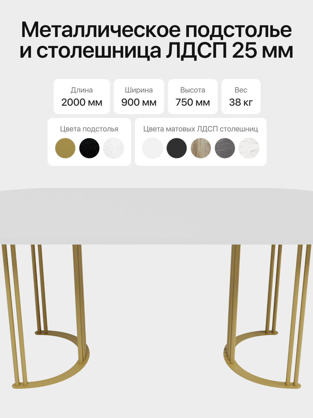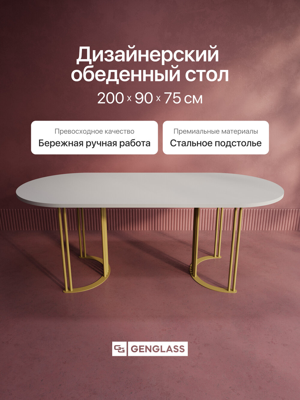 GEN GROUP Стол кухонный овальный 200х90 см VIOLUR, белый с золотым металлическим подстольем: сравнение цен, характеристики, фото, актуальное наличие и цены.