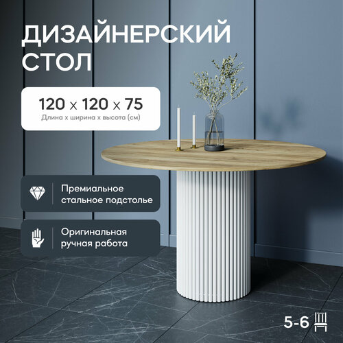 Обеденный стол - неотъемлемая деталь кухонного интерьера. Дизайнерский стол в стиле минимализма станет гармоничным дополнением кухонного пространства. Благодаря своей форме, кухонный стол создает атмосферу близости и общения во время приема пищи. Кухонный стол не только прекрасно впишется в интерьер вашего дома, но и станет незаменимым элементом вашего обеденного пространства. Выполненный из качественных материалов, стол кухонный круглый обладает прочностью и долговечностью. Благодаря своим размерам, стол обеденный круглый поместится даже в небольшую кухню или столовую, придавая ей стильный и современный вид. Cтол станет украшением вашего пространства и будет вызывать только положительные эмоции у ваших гостей. Кроме того, этот стол также может быть использован как письменный стол или как рабочий стол, его эргономичный дизайн обеспечит комфорт и удобство. Круглый стол также имеет игровую функцию, что делает игровой стол универсальным и практичным предметом мебели. Вы можете наслаждаться игрой со своими детьми или проводить время весело с друзьями за настольными играми, не беспокоясь о нехватке места. Стол выполнен из высококачественных материалов, которые гарантируют его долговечность и надежность. Трубчатое основание (подстолье) изготовлено из металла (высококачественная нержавеющая сталь) с устойчивой (двойной) порошковой окраской диаметром 40 см. Столешница - ЛДСП толщиной 16 мм, диаметром 120 см. В комплекте имеются регулируемые ножки для устойчивости стола на неровных поверхностях. Возможна различная комбинация цветов металлического каркаса и столешницы. Гарантия на товар составляет 1 год. Большой обеденный стол - идеальный выбор для всех, кто ценит комфорт и уют в своей кухне!