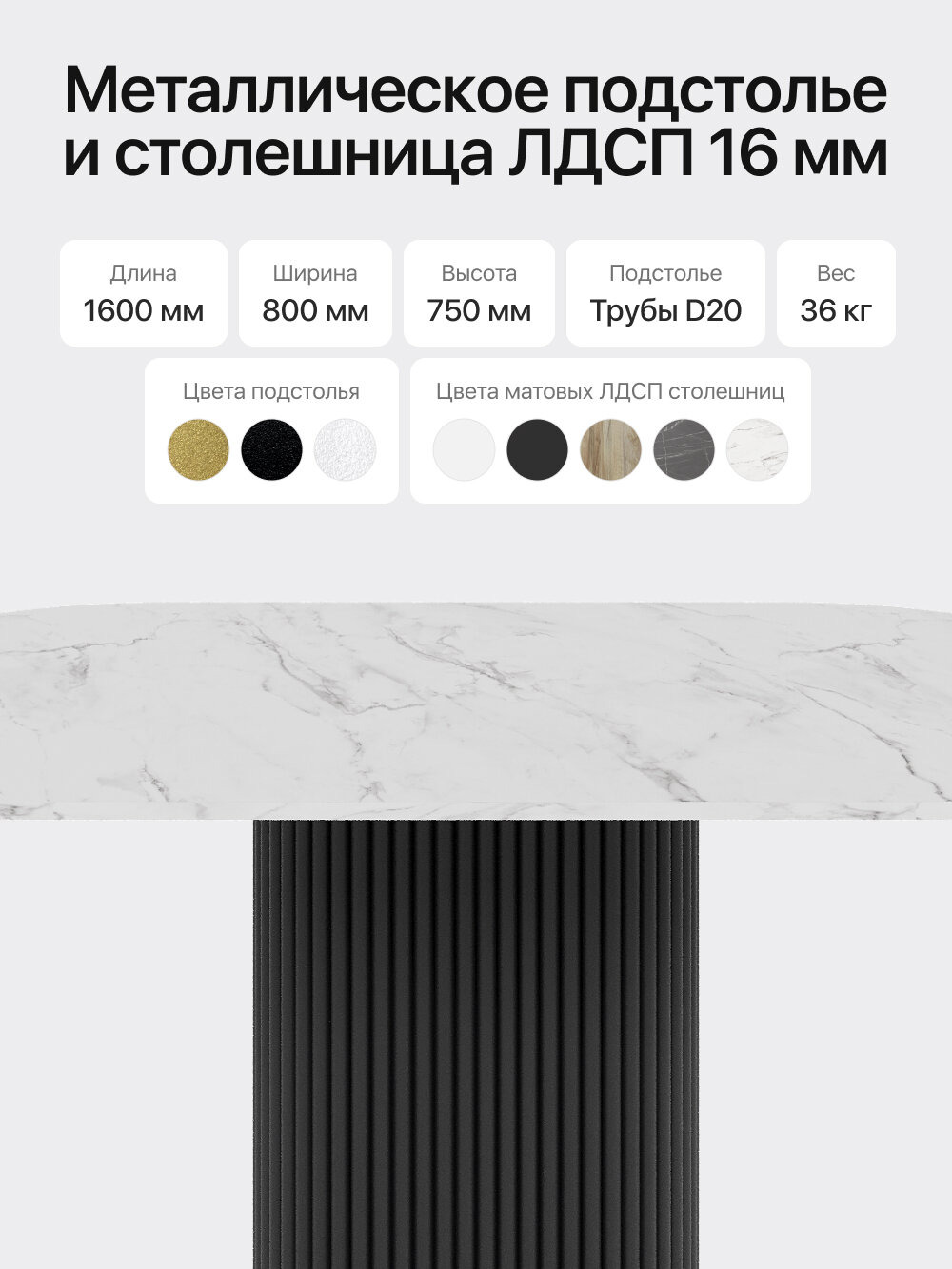 GEN GROUP Стол обеденный овальный 160х80 см TRUBIS Wood белый мрамор с черным металлическим подстольем: сравнение цен, характеристики, фото, актуальное наличие и цены.