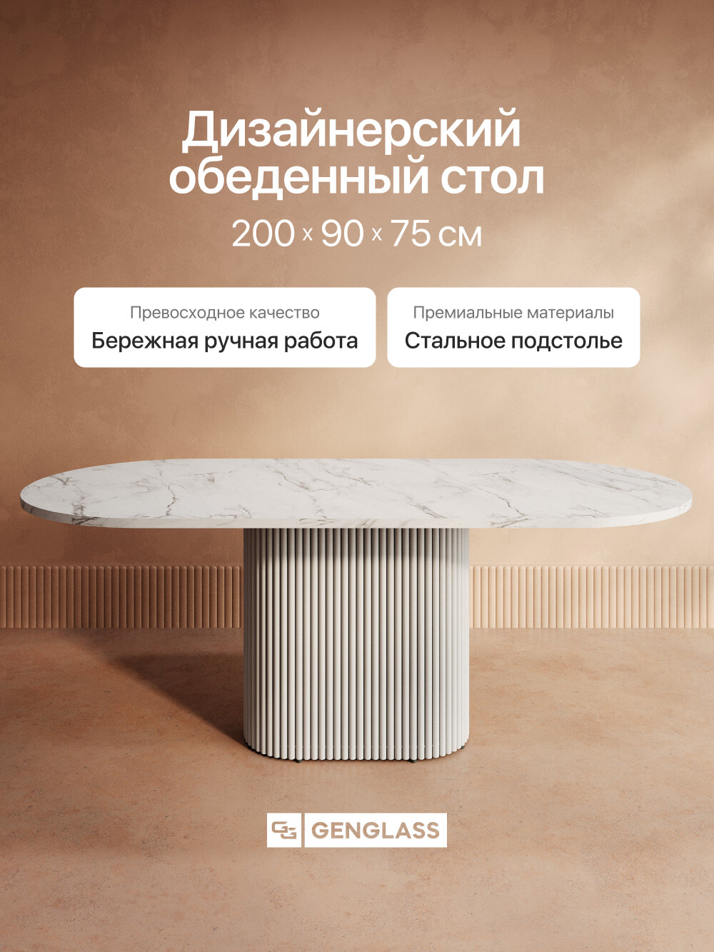 GEN GROUP Стол обеденный овальный 200х90 см TRUBIS Wood столешница светлый мрамор с белым металлическим подстольем: сравнение цен, характеристики, фото, актуальное наличие и цены.