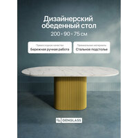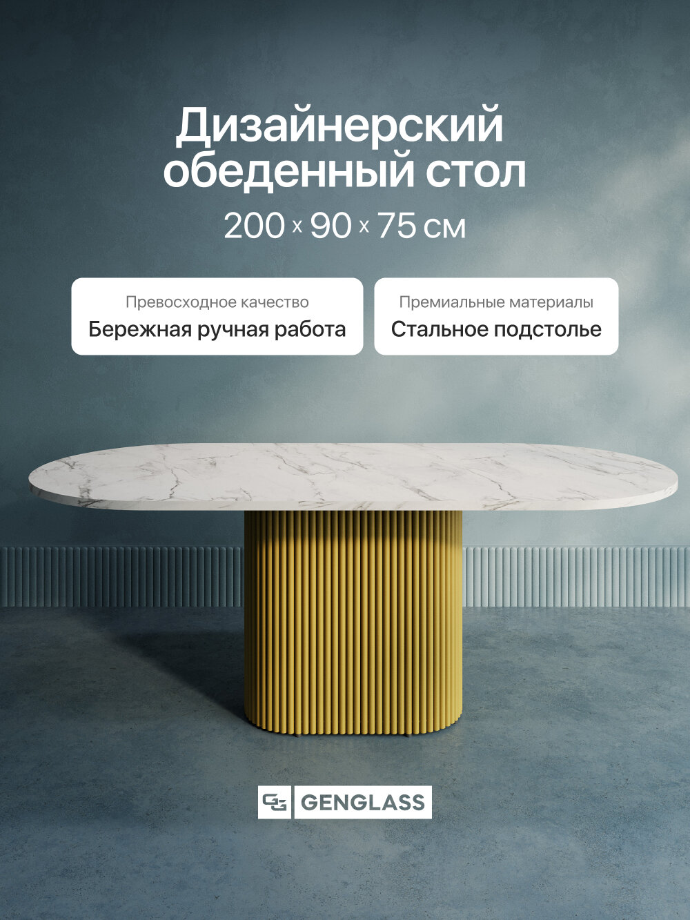 GEN GROUP Стол обеденный овальный 200х90 см TRUBIS Wood столешница светлый мрамор с золотым металлическим подстольем: сравнение цен, характеристики, фото, актуальное наличие и цены.