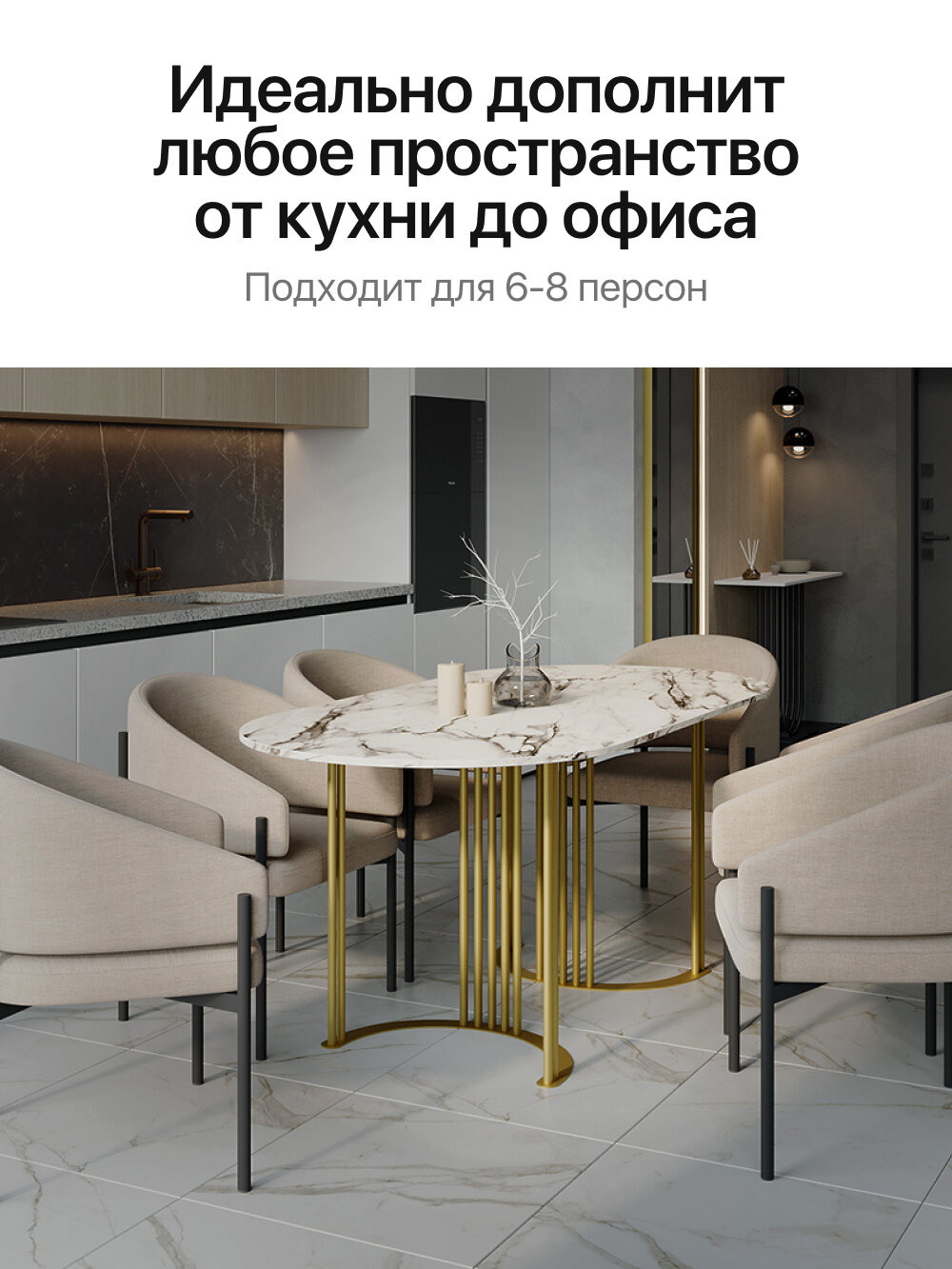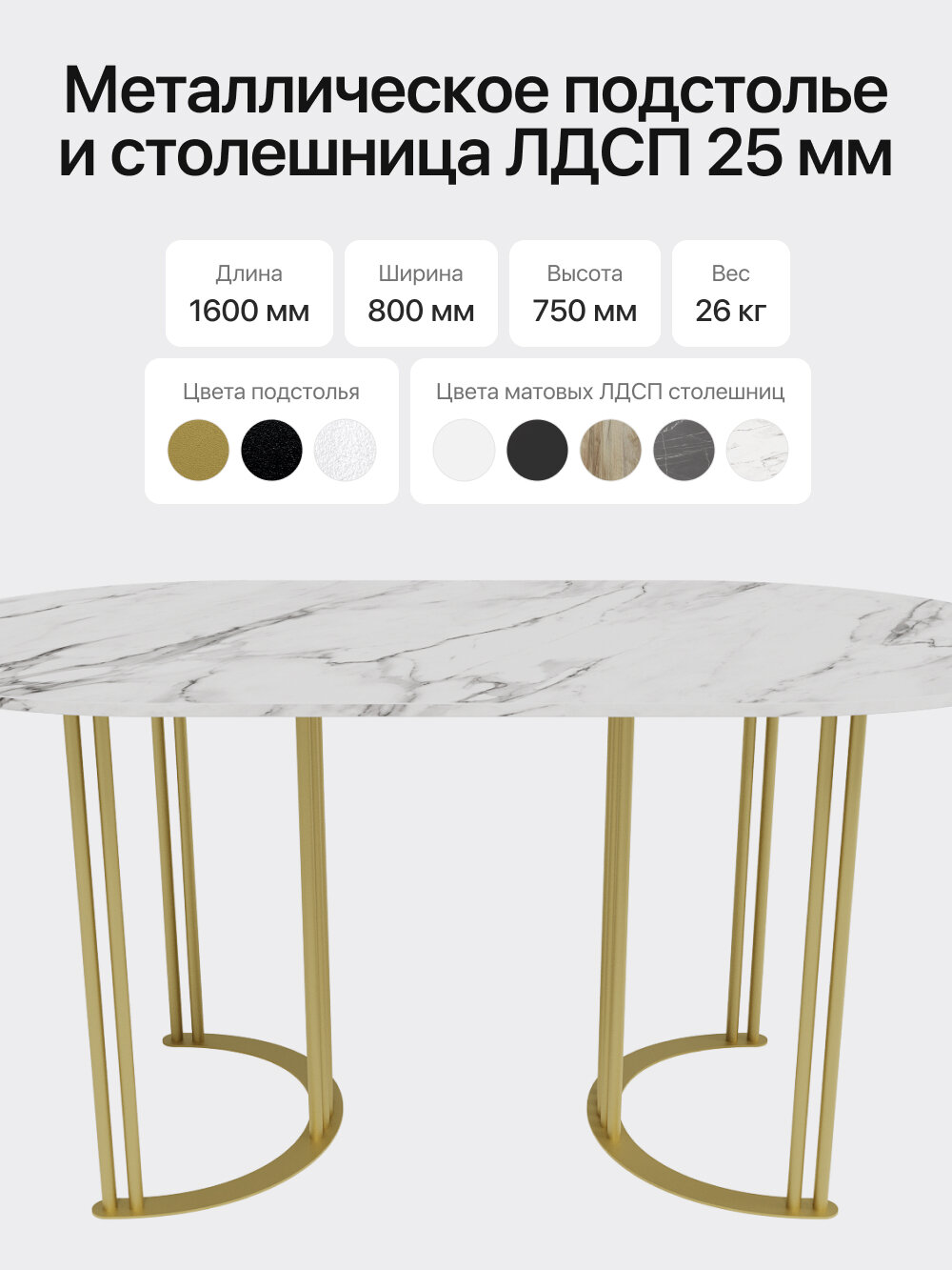 GEN GROUP Стол овальный кухонный 160х80 см VIOLUR, белый мрамор с золотым металлическим подстольем: сравнение цен, характеристики, фото, актуальное наличие и цены.