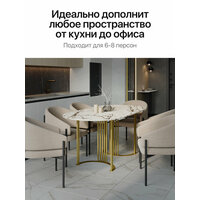Купить GEN GROUP Стол овальный кухонный 160х80 см VIOLUR, белый мрамор с золотым металлическим подстольем с доставкой по всей России.