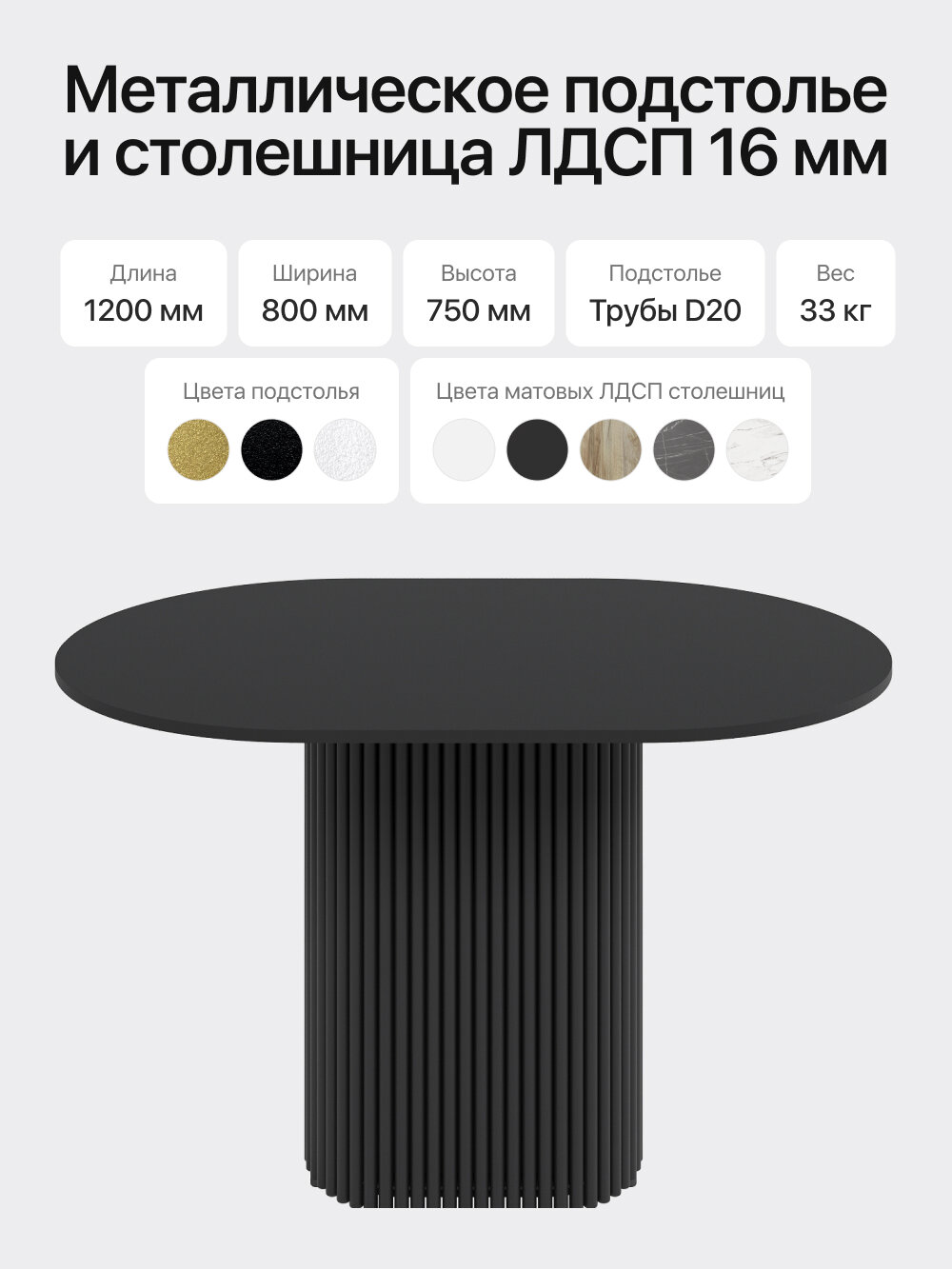 GEN GROUP Стол овальный обеденный 120*80см TRUBIS Wood, черная столешница с металлическим подстольем: сравнение цен, характеристики, фото, актуальное наличие и цены.