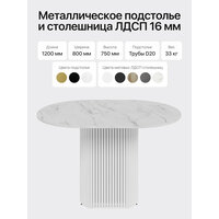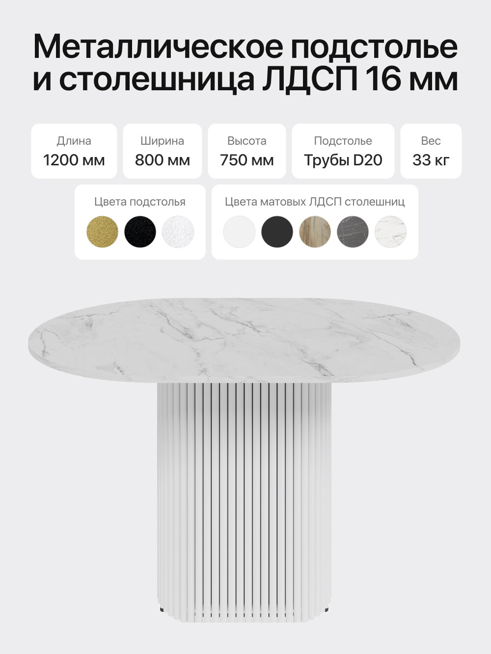 GEN GROUP Стол овальный обеденный 120*80см TRUBIS Wood, столешница белый мрамор с белым металлическим подстольем: сравнение цен, характеристики, фото, актуальное наличие и цены.