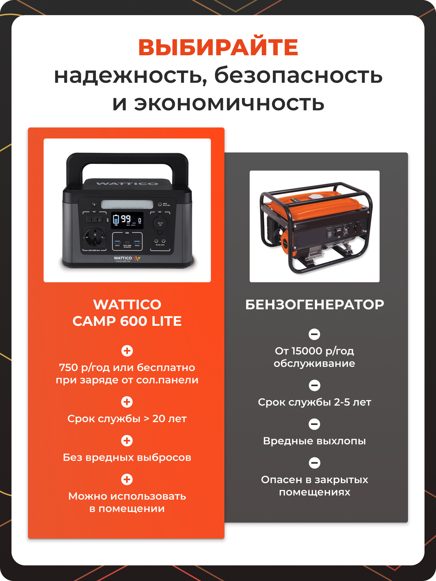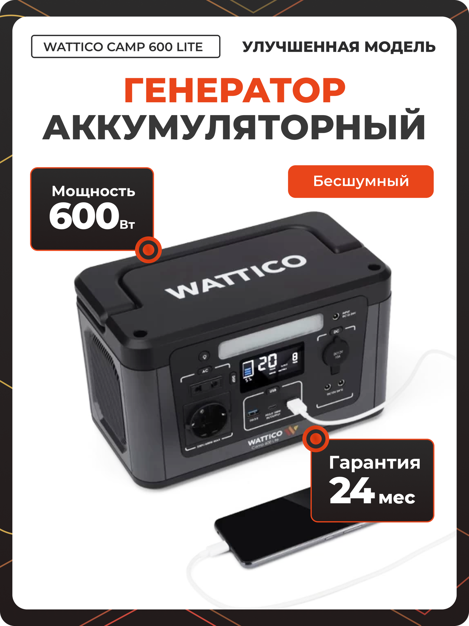 Купить Генератор аккумуляторный WATTICO Camp600Lite, автономный, электростанция 220 В с доставкой по всей России.