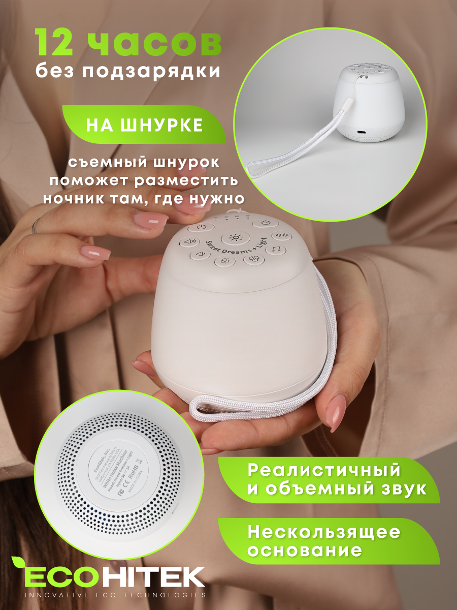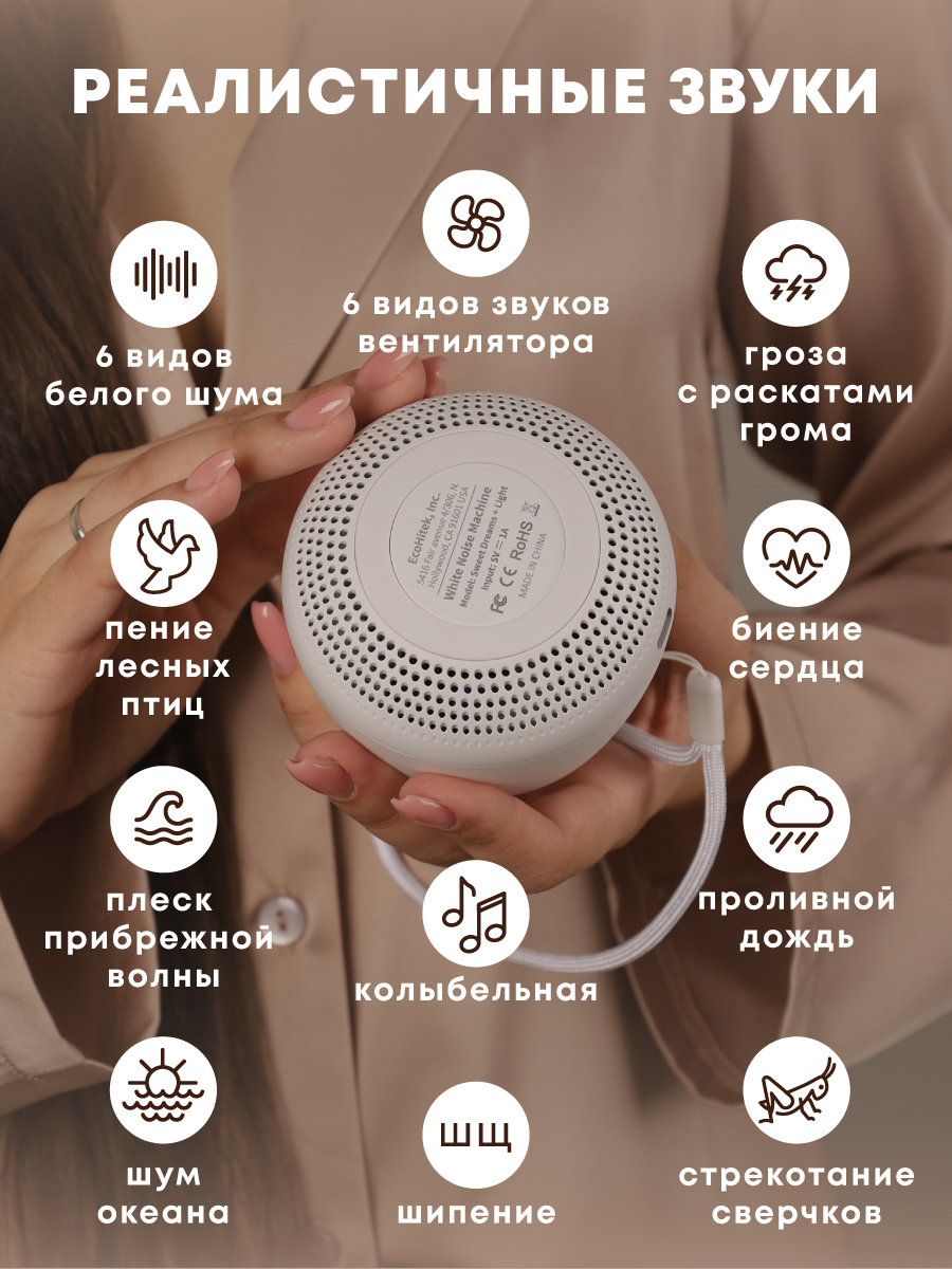 Генератор белого шума Sweet Dreams с подсветкой. Ночник для детей. Регулируемая яркость и громкость. Аккумулятор. Работа от сети. Таймер: сравнение цен, характеристики, фото, актуальное наличие и цены.