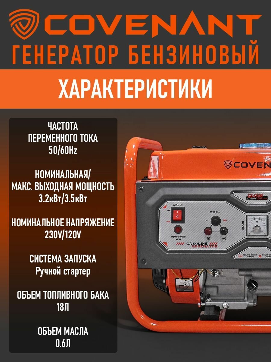 Генератор бензиновый «COVENANT» GG4500 (3,2/3,5кВт, медь)
