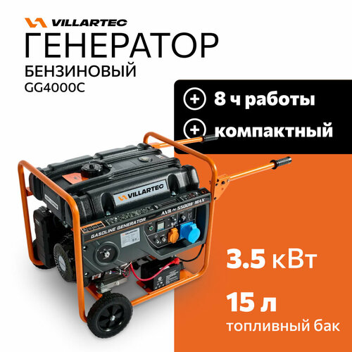 Электрогенератор бензиновый VILLARTEC GG4000C - это надежное и мощное устройство, оснащенное высококачественным экономичным OHV-двигателем, который имеет высокий показатель производительности. Бензиновый генератор способен на непрерывную работу в течение 8 часов, имеет топливный бак объемом 15 л. Также в данной модели есть режим экономии топлива, что делает данный генератор более экономичным и эффективным при работе.