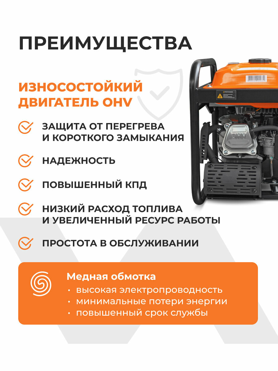 Генератор VILLARTEC также оснащен функцией автоматического отключения при перегрузке, что обеспечивает безопасность использования. По сравнению с обычными бензиновыми генераторами инверторные бесшумны и более мобильны за счет небольшого веса. Бензиновые генераторы
