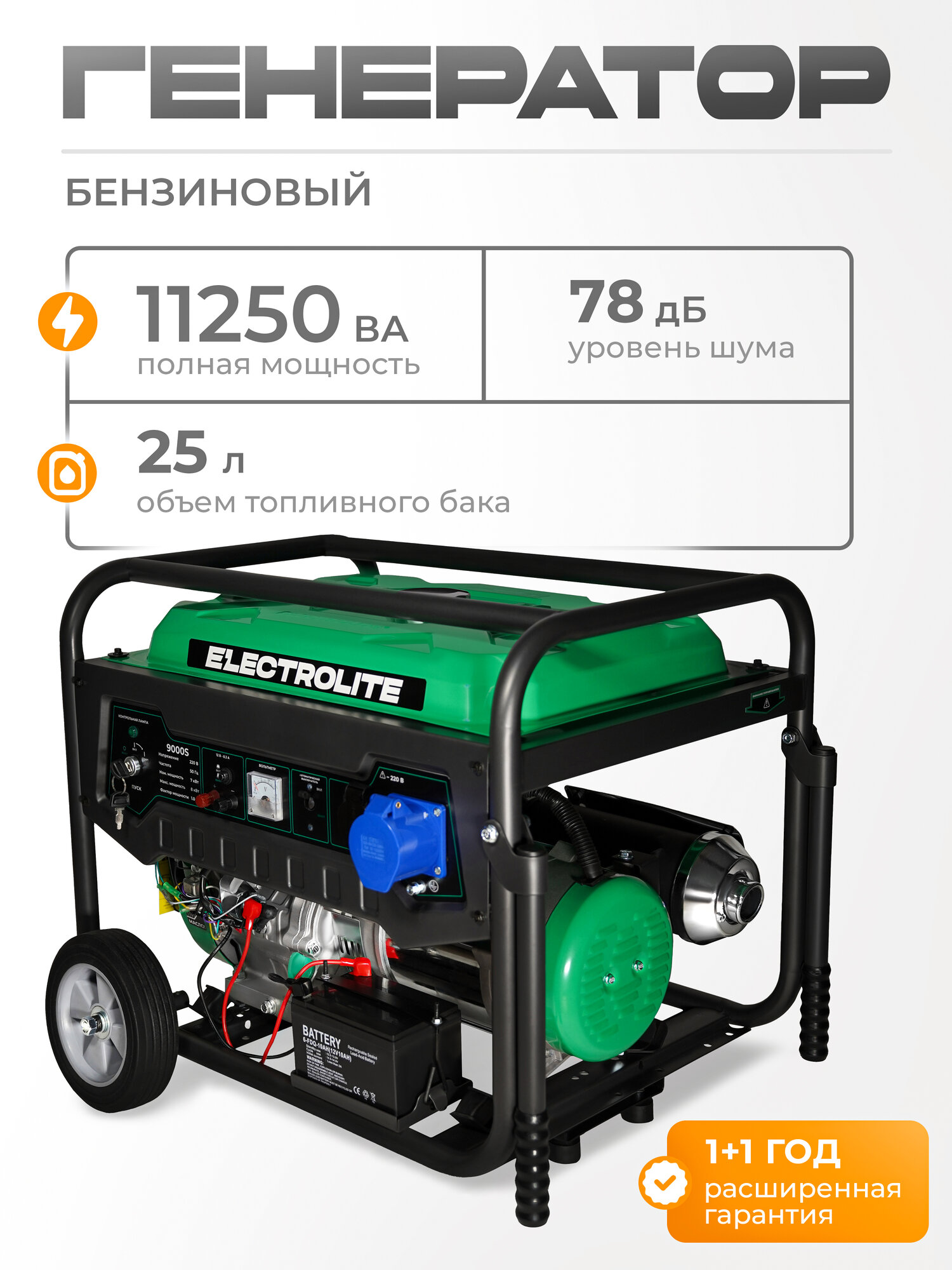 Генератор ELECTROLITE 9000S, 9кВт, 220/12В, 17л. с, 4-тактный, воздушный, 25л: сравнение цен, характеристики, фото, актуальное наличие и цены.