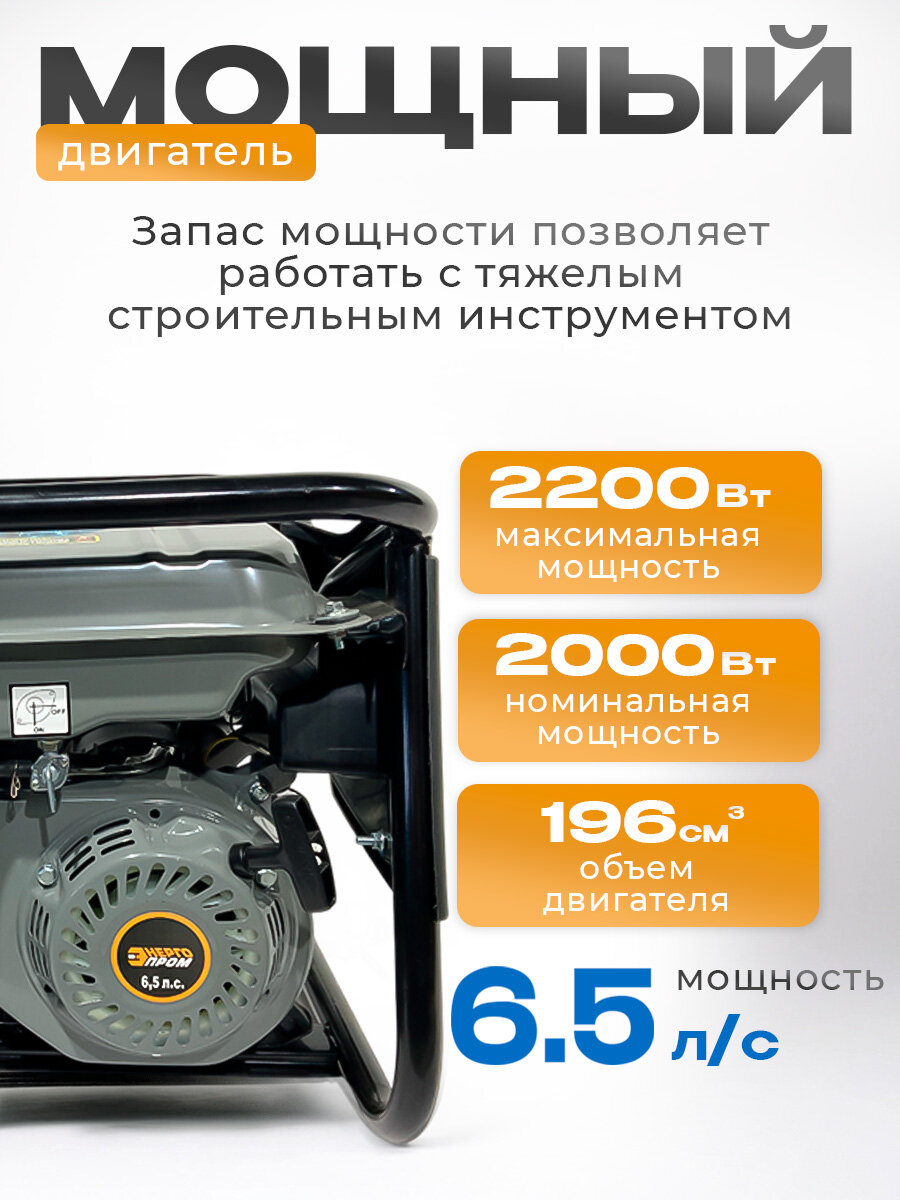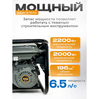 Бензиновый генератор – надежное решение для обеспечения электроэнергией в различных условиях. Этот мощный электрогенератор станет отличным помощником как в быту, так и на даче, обеспечивая стабильное питание для вашего оборудования. При мощности 2,2 кВт он способен справляться с различными задачами, включая работу электроинструментов и бытовых приборов. Такой генератор также идеально подходит для организации электроснабжения во время отключений или в условиях удаленности от централизованных источников энергии. Инверторный бензогенератор обеспечивает чистую и стабильную выходную мощность, что позволяет безопасно использовать его для питания чувствительной электроники. Вы сможете не беспокоиться о повреждении ваших устройств, благодаря высокому качеству вырабатываемого тока. Вам придется каждый раз вручную запускать устройство – достаточно настроить систему, и оно будет готово к работе при необходимости. Четырехтактный двигатель обеспечивает эффективность работы и низкий уровень выбросов. Бензиновая модель также отличается простотой обслуживания и легкостью в эксплуатации, что делает ее доступной даже для новичков. Если вам нужен бензогенератор с возможностью длительной работы без частой заправки, данная модель станет идеальным вариантом. Она отлично подойдет как для домашних нужд, так и для использования на строительных площадках или во время отдыха на природе. Удобные ручки и колеса обеспечивают мобильность устройства. Теперь вы сможете легко перемещать генератор с места на место без особых усилий. Электрический бензиновый генератор гарантирует долгий срок службы благодаря качественным материалам и современным технологиям производства. Это выгодное вложение средств для обеспечения бесперебойного электроснабжения вашего дома или дачи. Обратите внимание на данный агрегат: он сможет стать вашим верным помощником в любой ситуации!