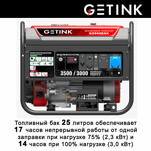 Купить Генератор бензиновый GETINK G3500EAX (3,5кВт, 1-Ф, электростартер) с доставкой по всей России. Генератор бензиновый GETINK G3500EAX (3,5кВт, 1-Ф, электростартер): сравнение цен, характеристики, фото, актуальное наличие и цены.