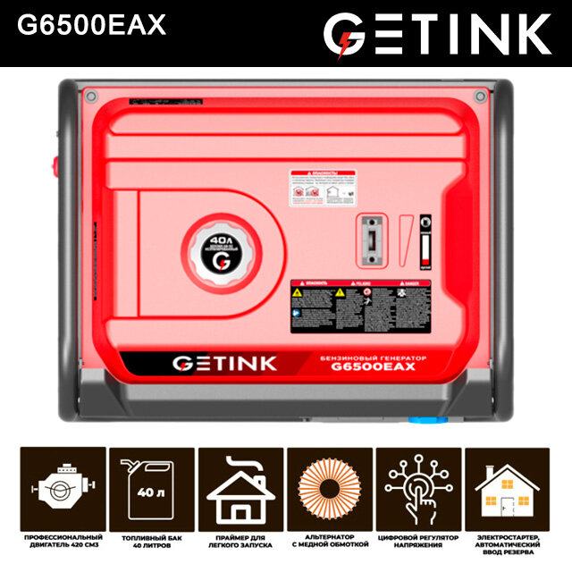 Купить Генератор бензиновый GETINK G6500EAX (6,5кВт, 1-Ф, электростартер) с доставкой по всей России. Генератор бензиновый GETINK G6500EAX (6,5кВт, 1-Ф, электростартер): сравнение цен, характеристики, фото, актуальное наличие и цены.