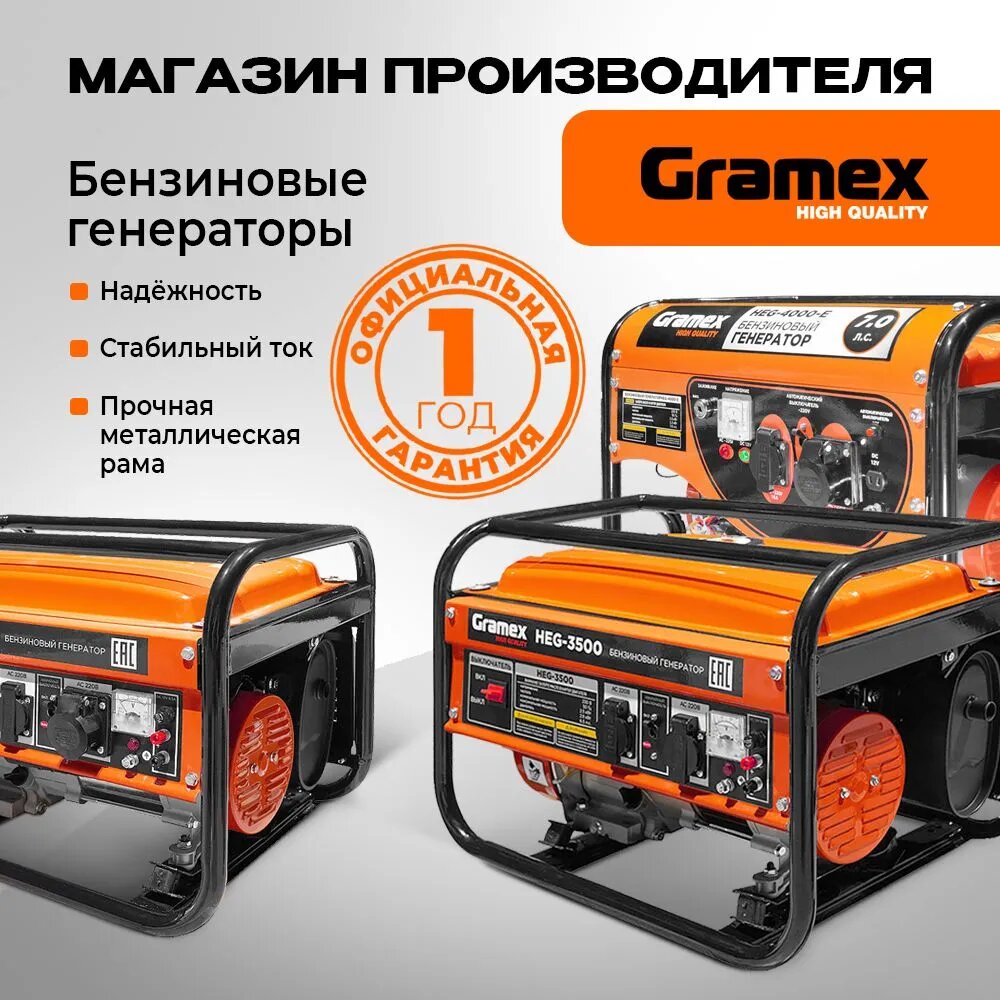 Генератор бензиновый Gramex HEG-4000-E / бензогенератор 3,3кВт/ электростанция 230В/ электрогенератор 7.0 л. с: сравнение цен, характеристики, фото, актуальное наличие и цены.