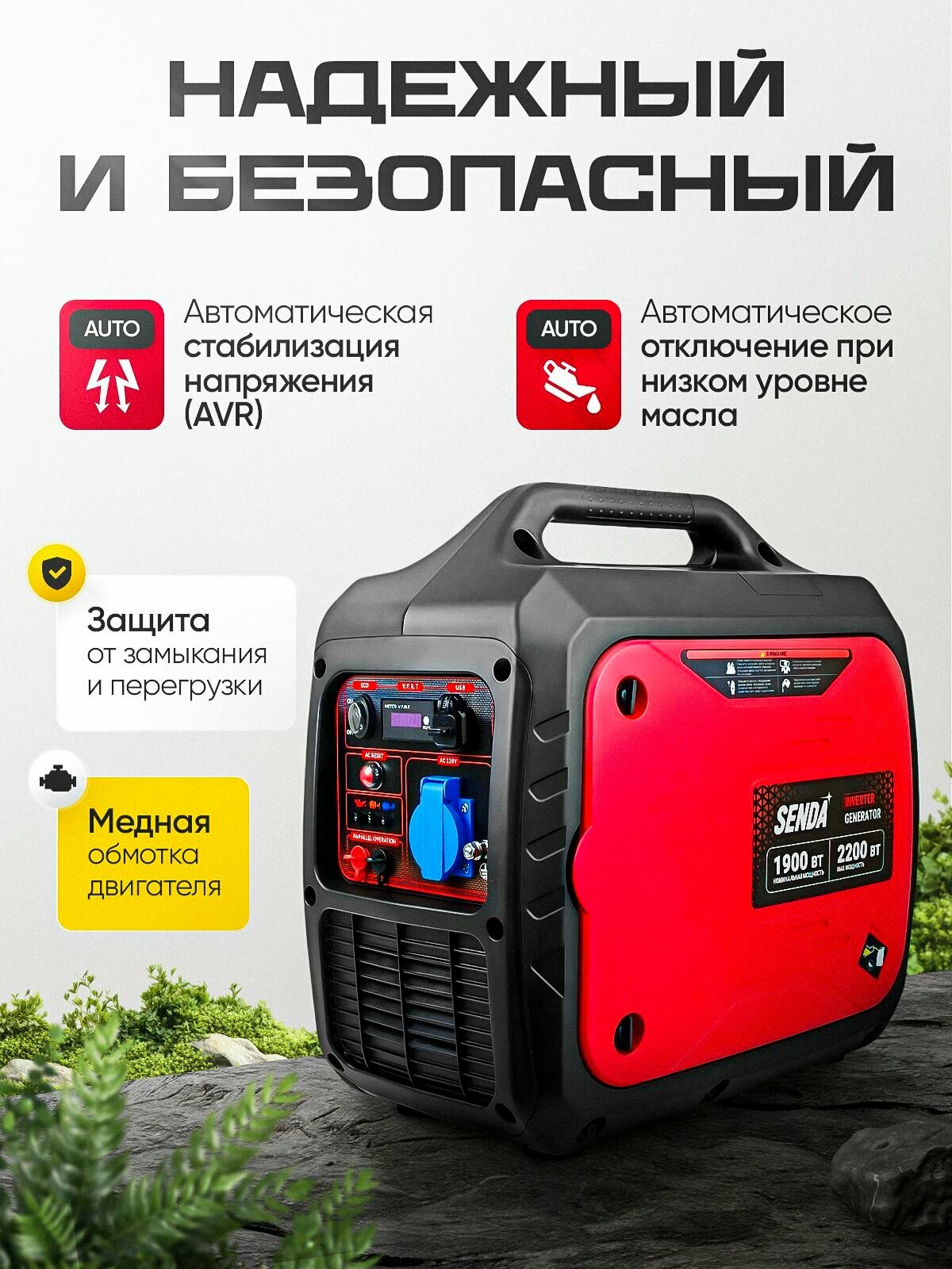 Купить Генератор бензиновый инверторный SENDA SD2200i (2200 Вт, 230В, 2 USB порта) с доставкой по всей России.