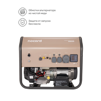 Купить Генератор бензиновый Nocord, 5.5 кВт, е-старт, АВР, 30л, розетки 32А + 2*16А, клеммы ~230 В, дисплей, медь, NPG-5500. EA с доставкой по всей России.