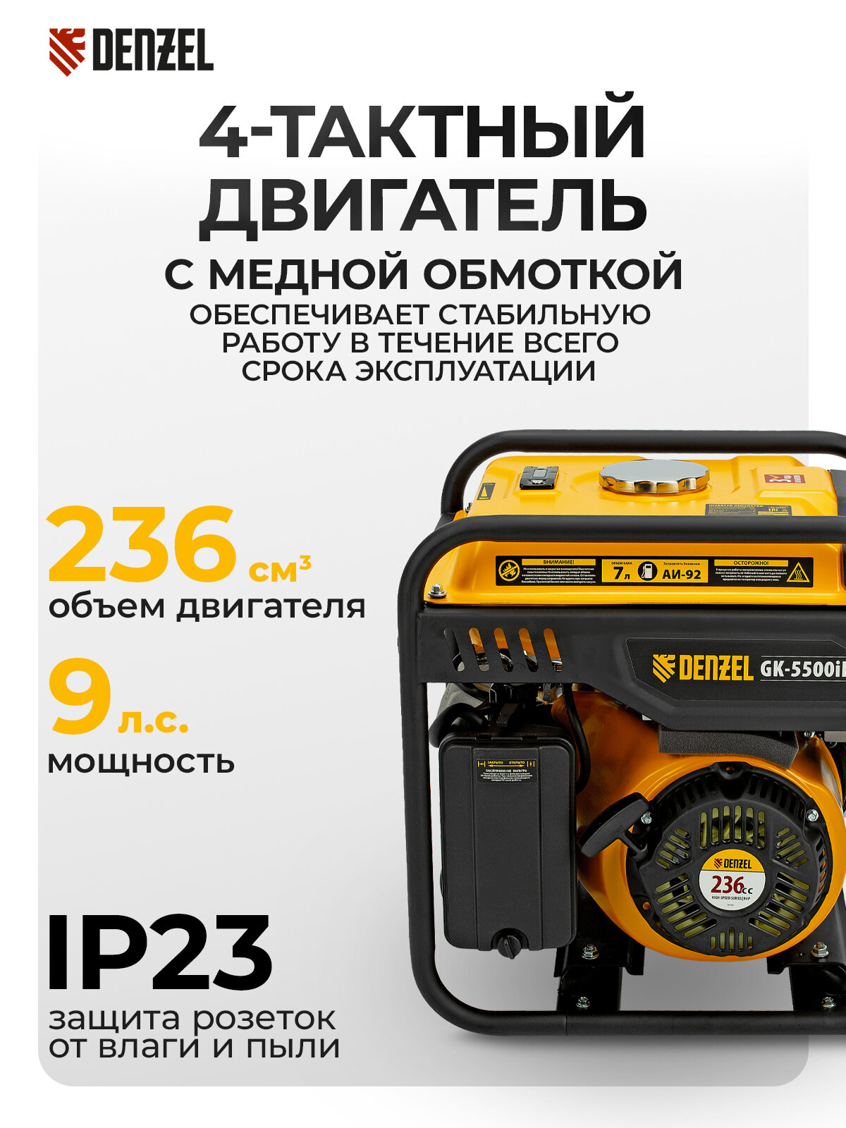 - Долговечность — надежный четырехтактный двигатель и альтернатор с медной обмоткой обеспечивают стабильную работу генератора на протяжении всего срока службы.