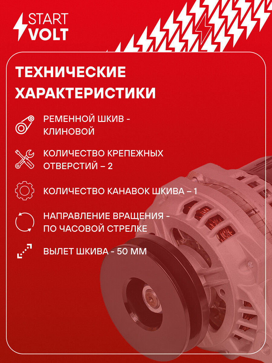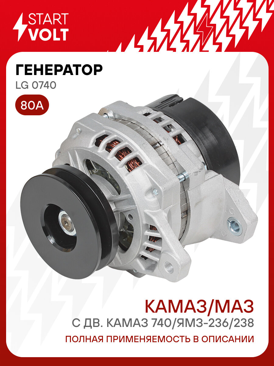 Оригинальный генератор STARTVOLT LG 0740 рассчитан на ток 80 А и напряжение 28 В.