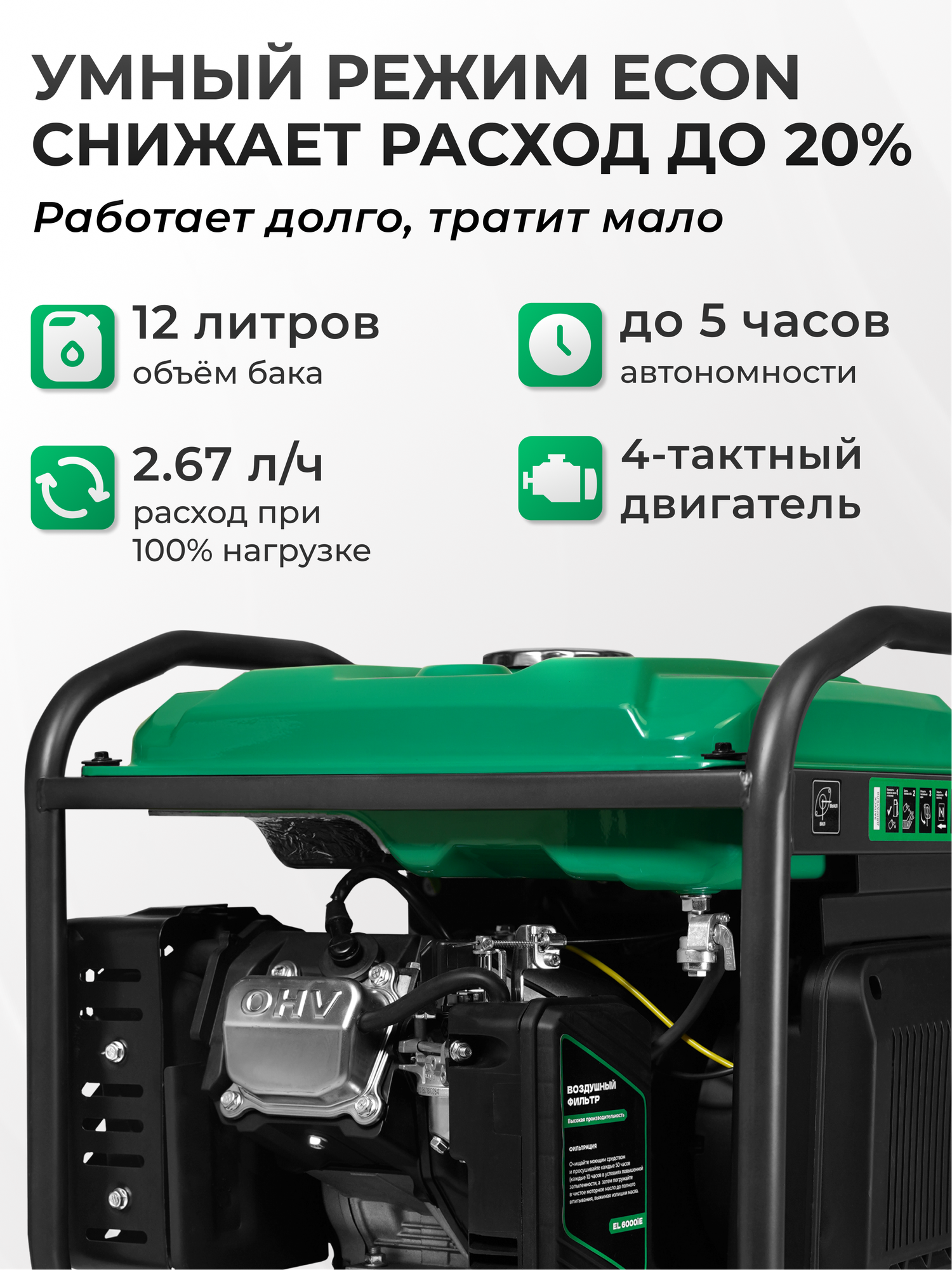 Генератор Electrolite EL 6000iE, бензиновый, инверторный, максимальная мощность 5500 Вт, электрозапуск: сравнение цен, характеристики, фото, актуальное наличие и цены.