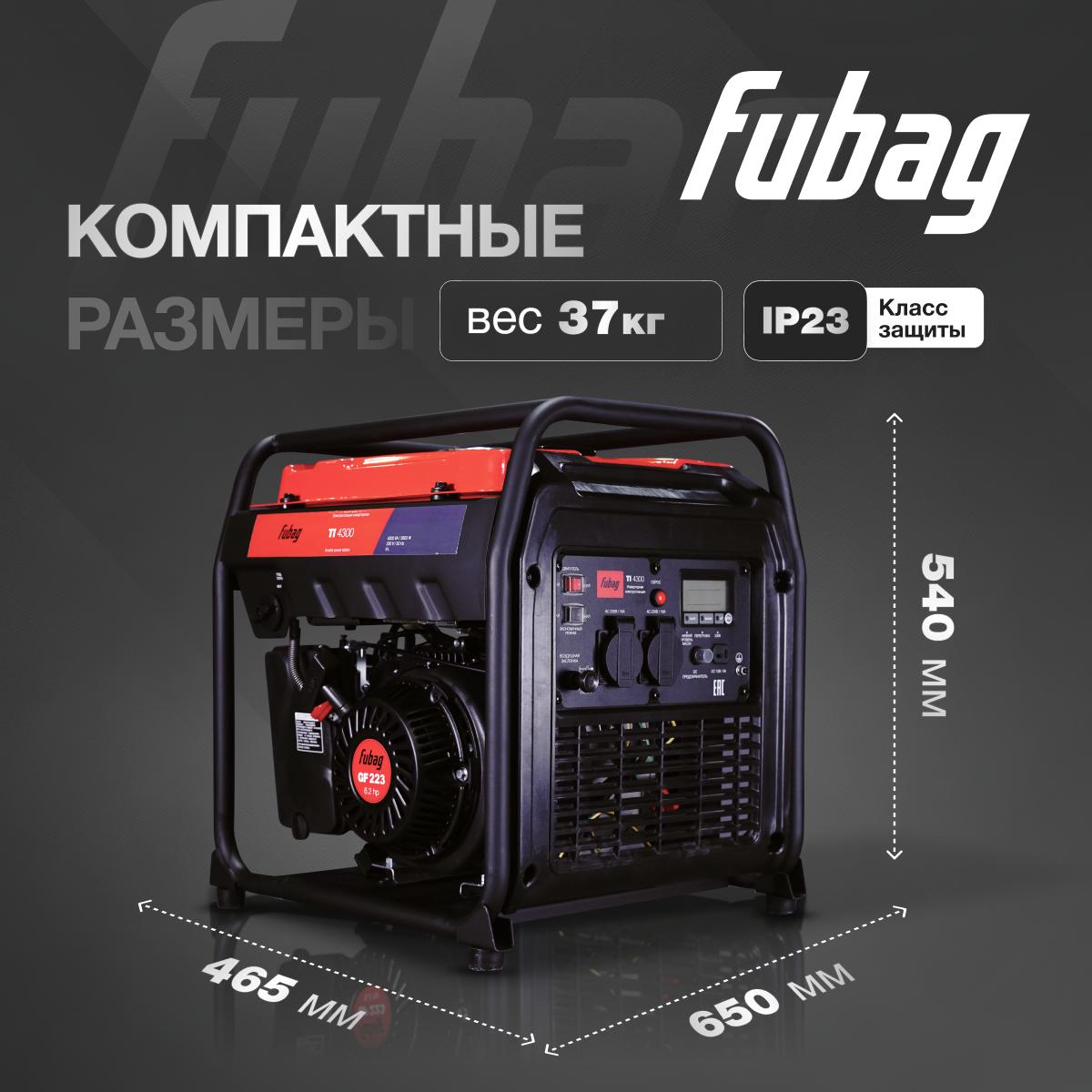 Купить Генератор инверторный бензиновый FUBAG TI 4300, 3.8 кВт, 220 В с доставкой по всей России. Генератор инверторный бензиновый FUBAG TI 4300, 3.8 кВт, 220 В: сравнение цен, характеристики, фото, актуальное наличие и цены.